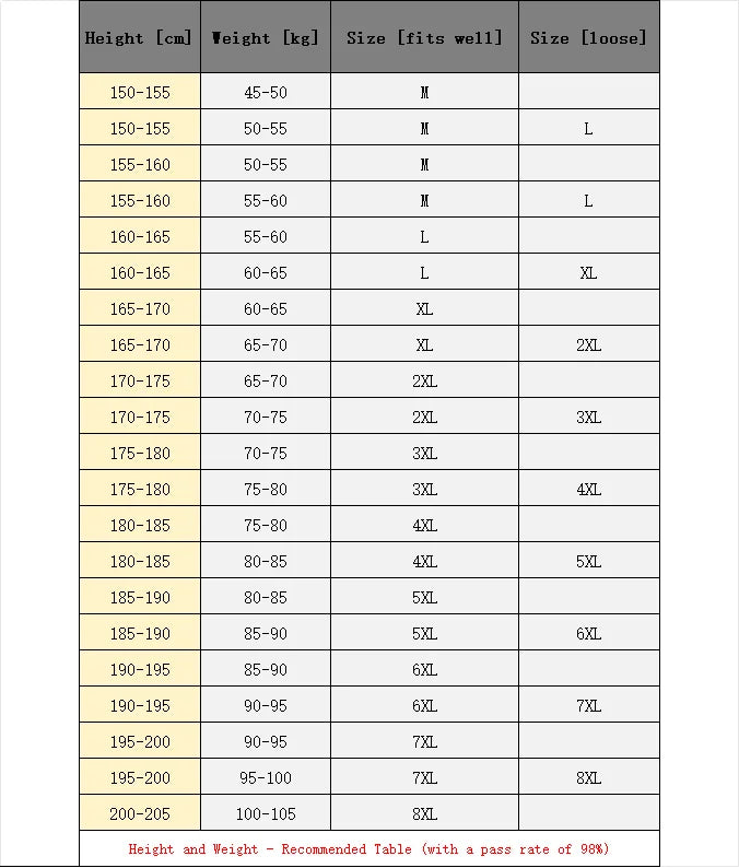 Asian size: M L XL XXL 3XL 4XL