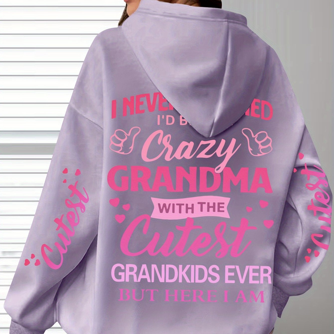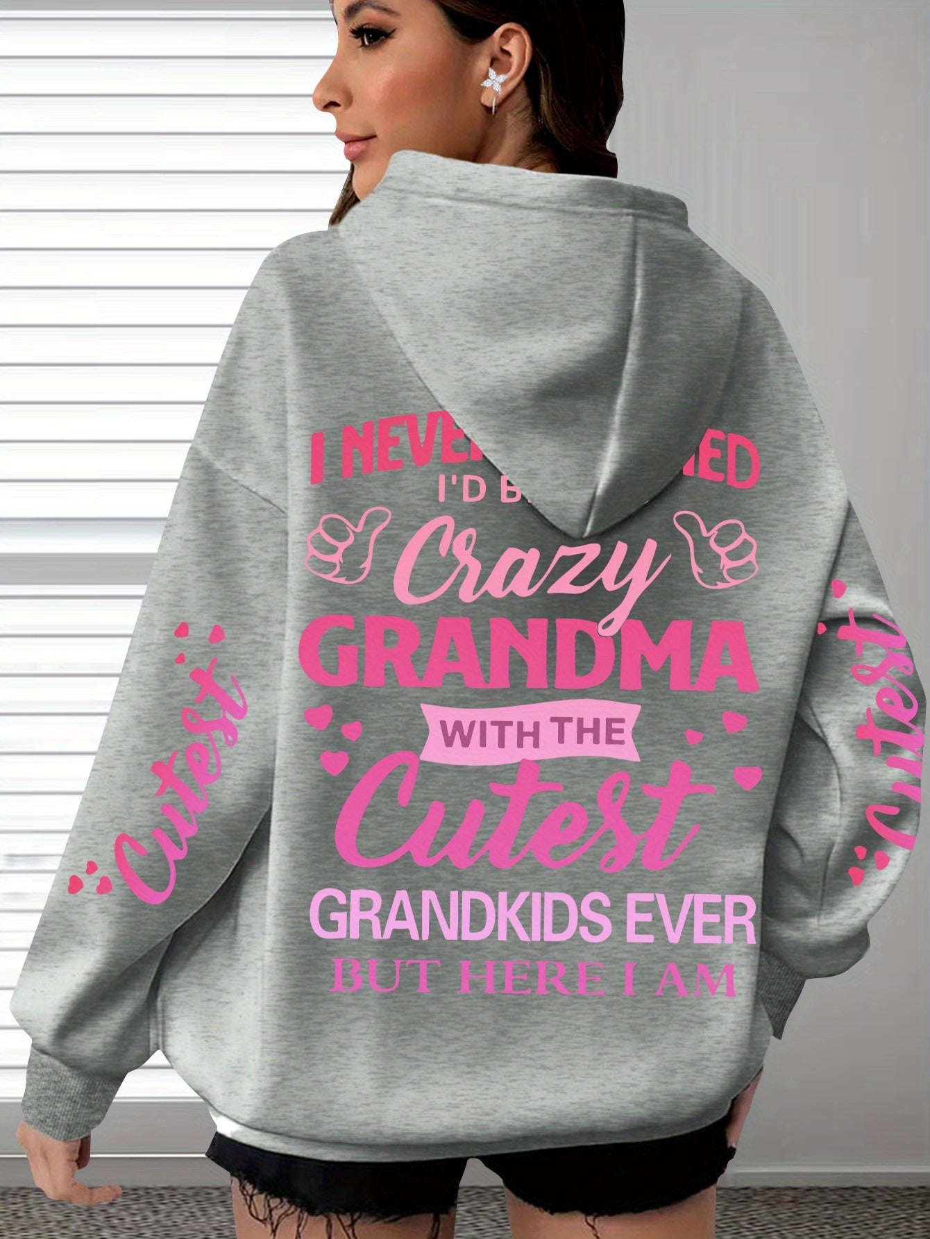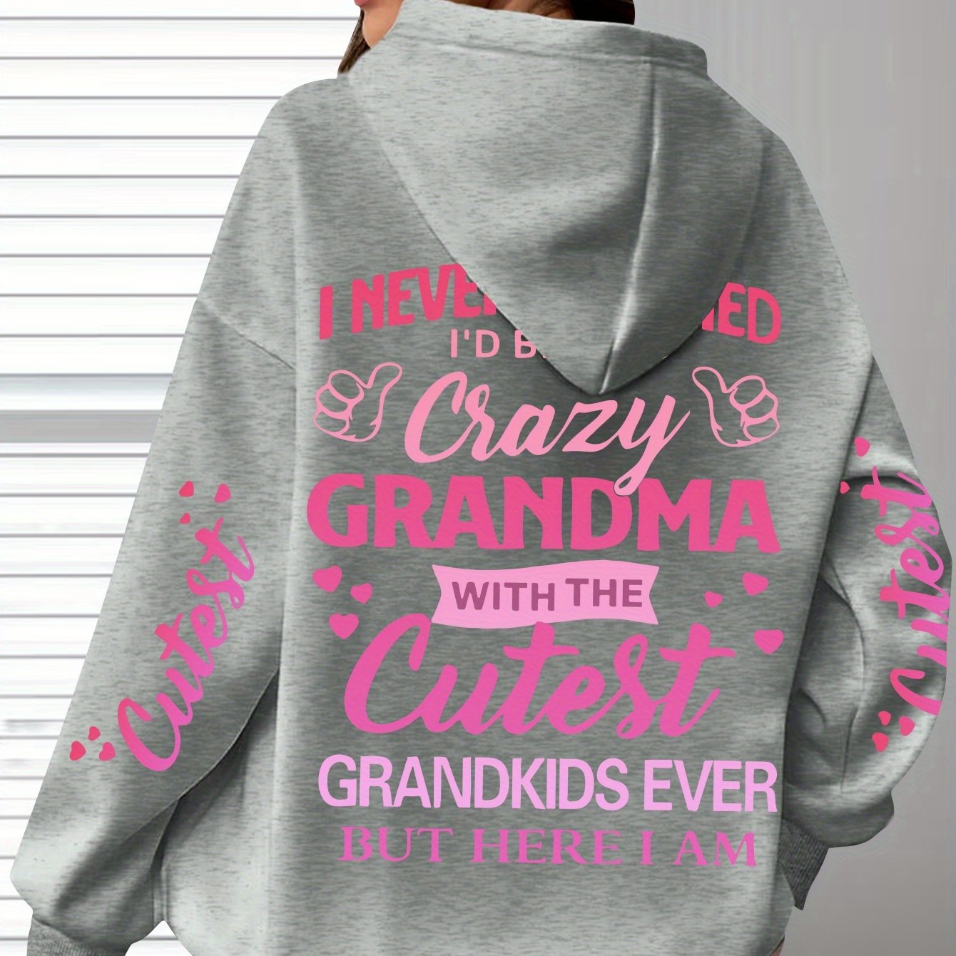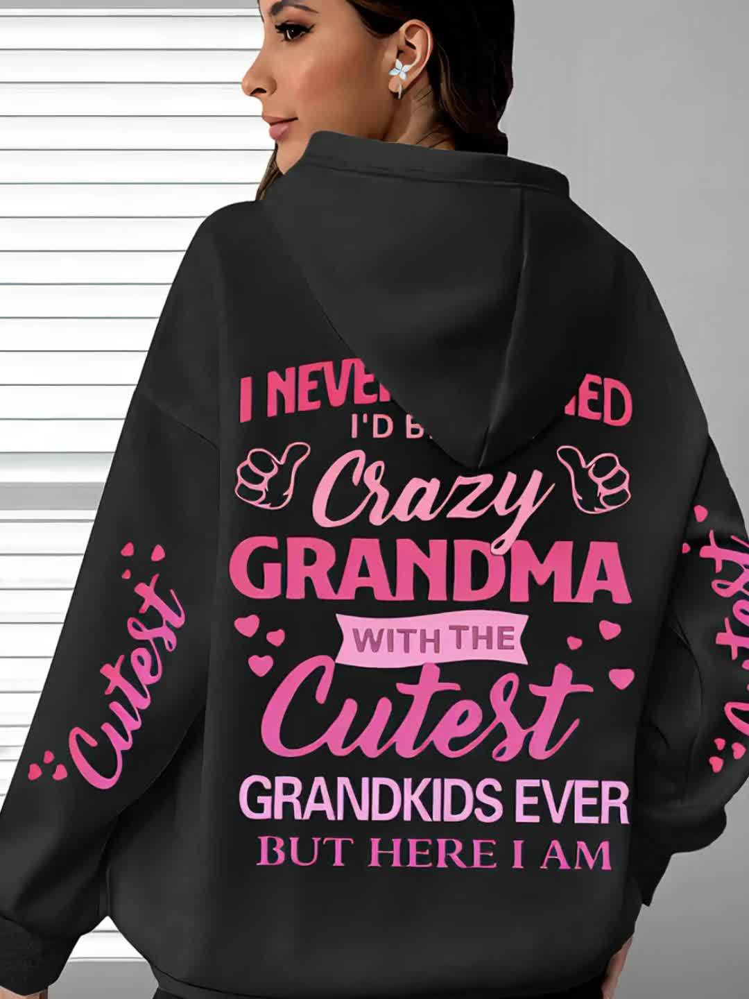 This plus-size hoodie for women blends comfort with personality, made from 100% polyester knit fabric that provides slight stretch for added flexibility. It showcases the fun "Crazy Grandma with the Cutest Grandkids Ever" printed lettering, featuring a casual pullover design and a snug hood suitable for year-round wear. Engineered for longevity and easy maintenance, it is machine washable and designed to withstand regular use. This hoodie serves as a thoughtful and functional gift for grandmothers who appreciate stylish, casual attire, with precise printing that keeps the design sharp and vibrant over time.