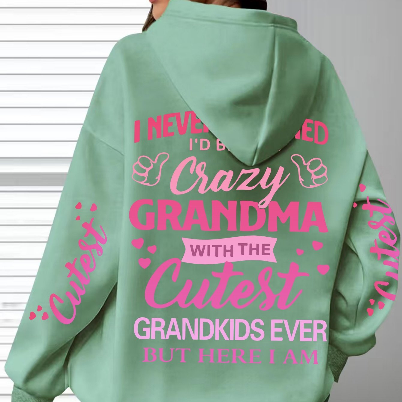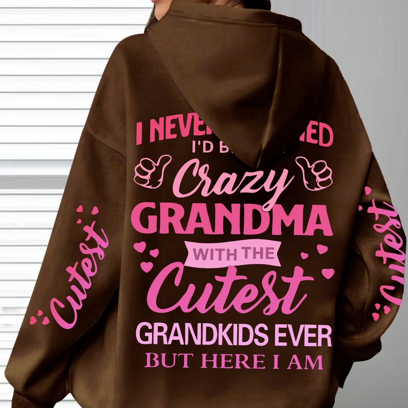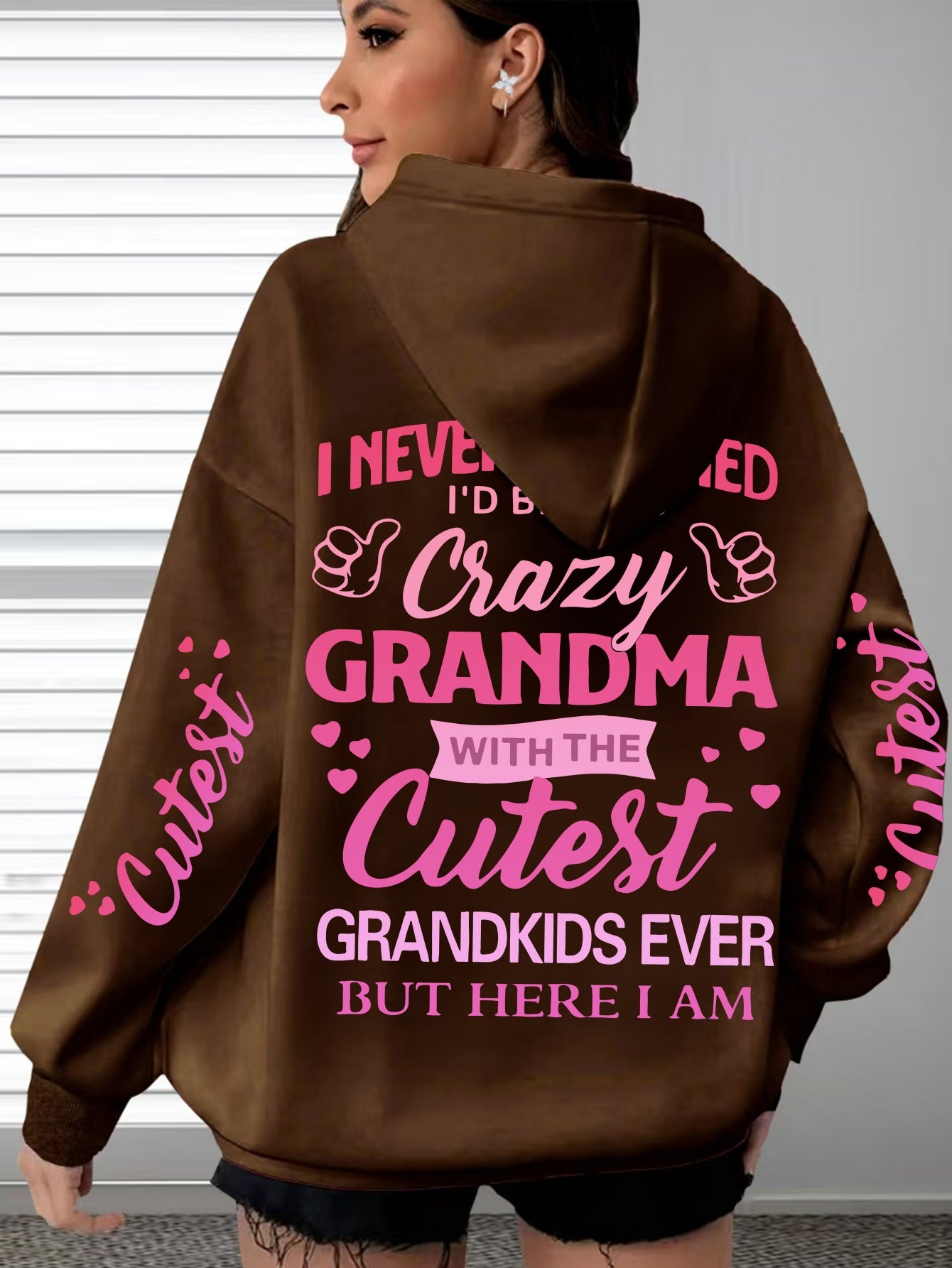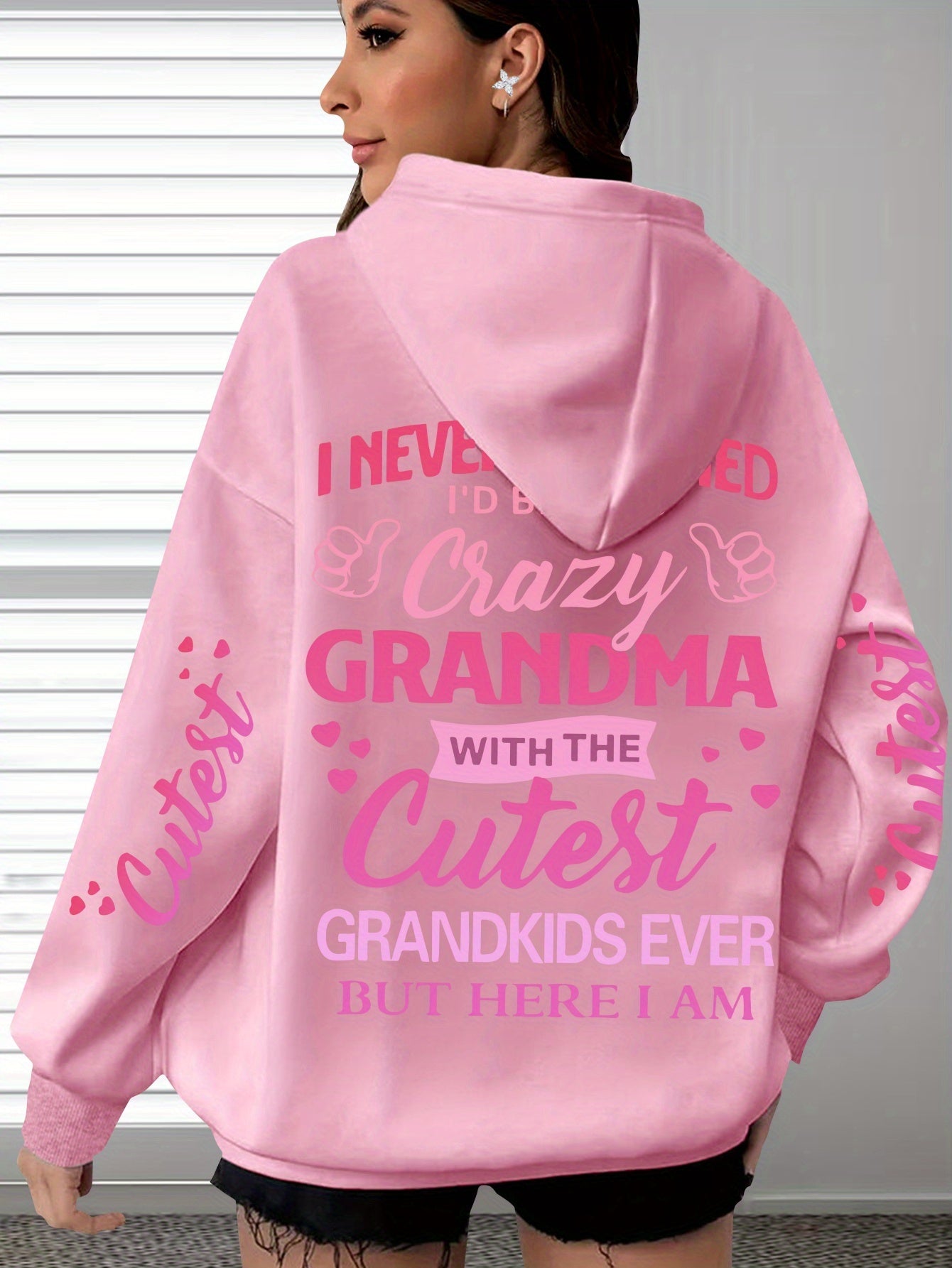 This plus-size hoodie for women blends comfort with personality, made from 100% polyester knit fabric that provides slight stretch for added flexibility. It showcases the fun "Crazy Grandma with the Cutest Grandkids Ever" printed lettering, featuring a casual pullover design and a snug hood suitable for year-round wear. Engineered for longevity and easy maintenance, it is machine washable and designed to withstand regular use. This hoodie serves as a thoughtful and functional gift for grandmothers who appreciate stylish, casual attire, with precise printing that keeps the design sharp and vibrant over time.