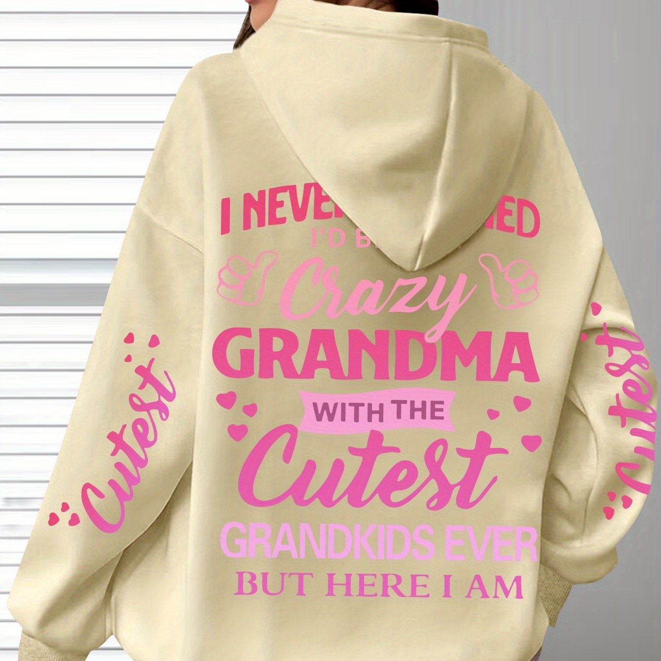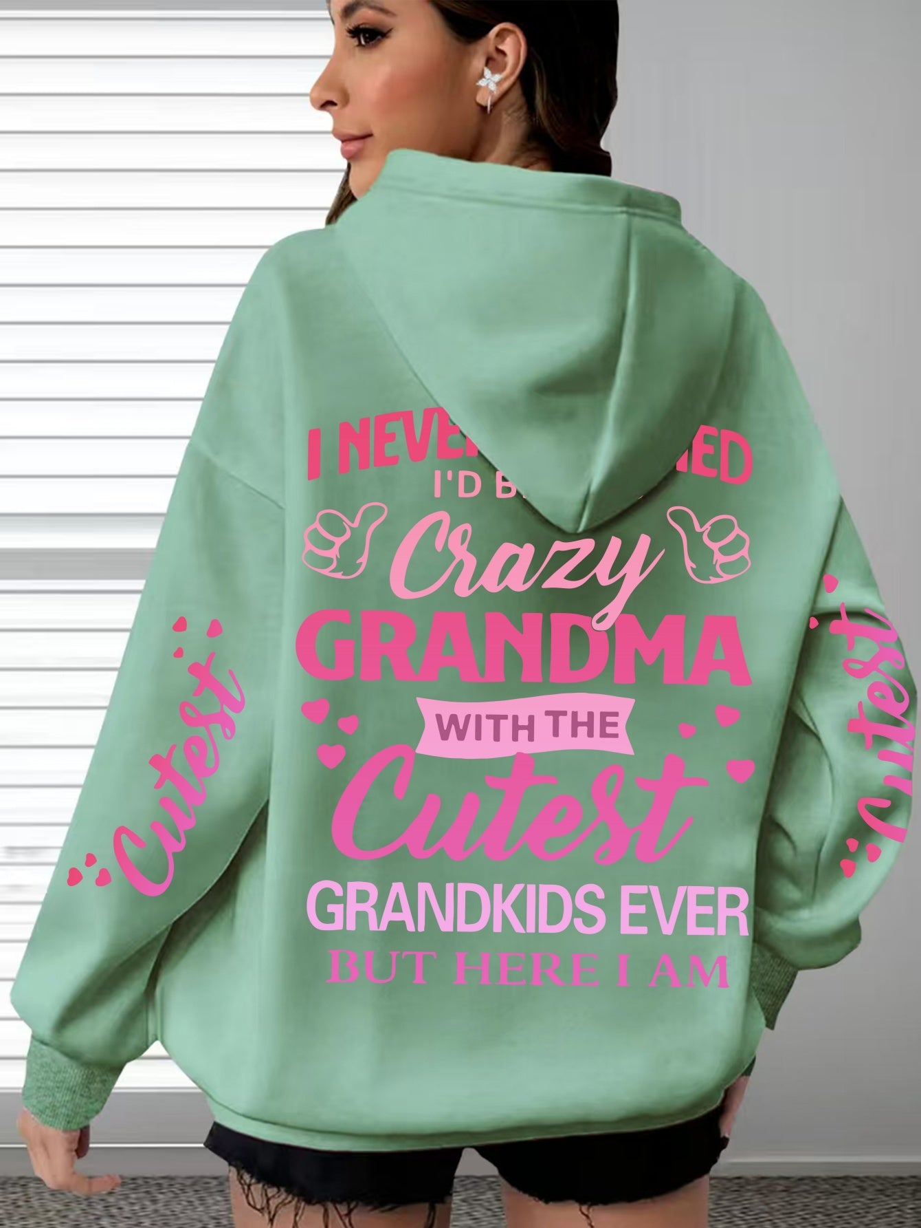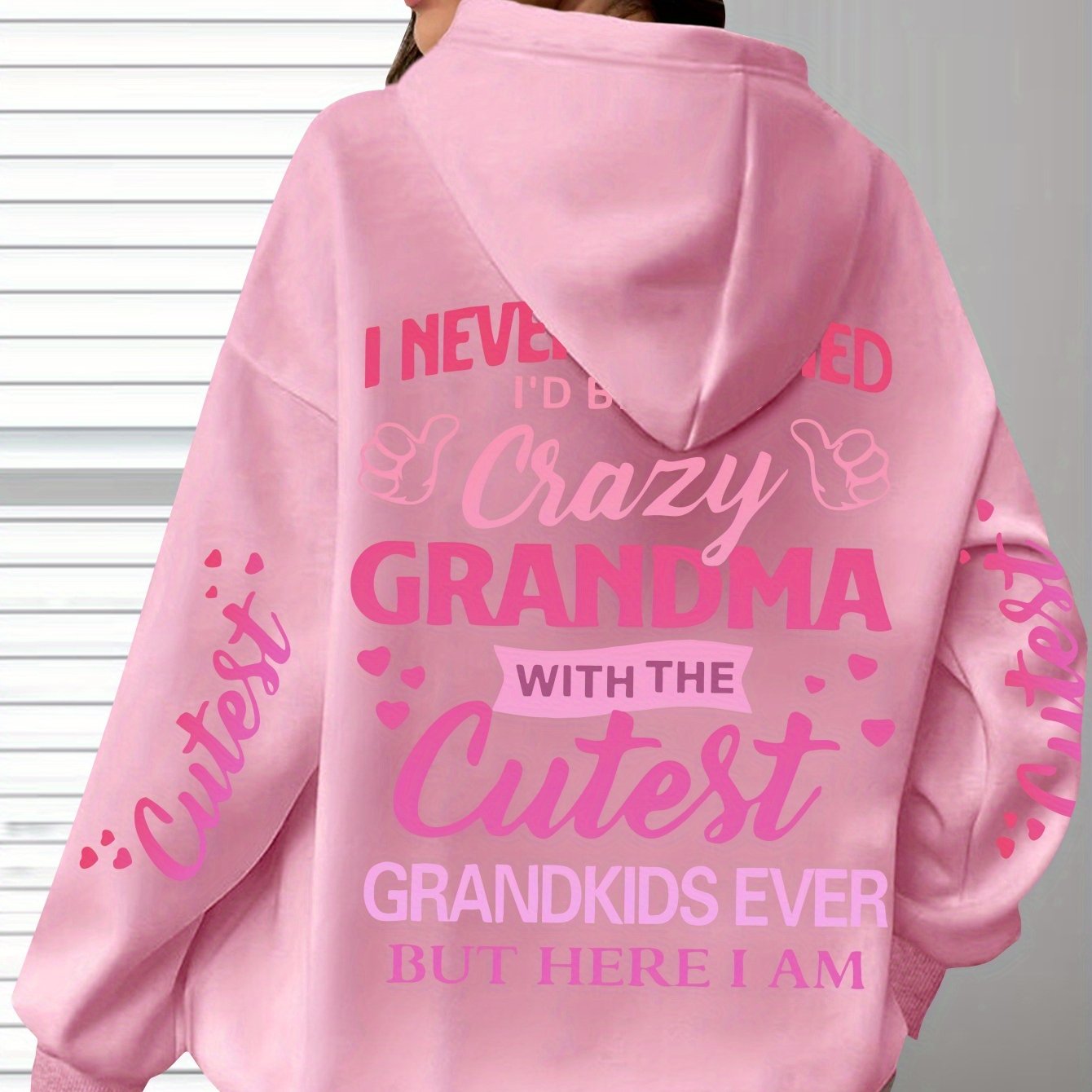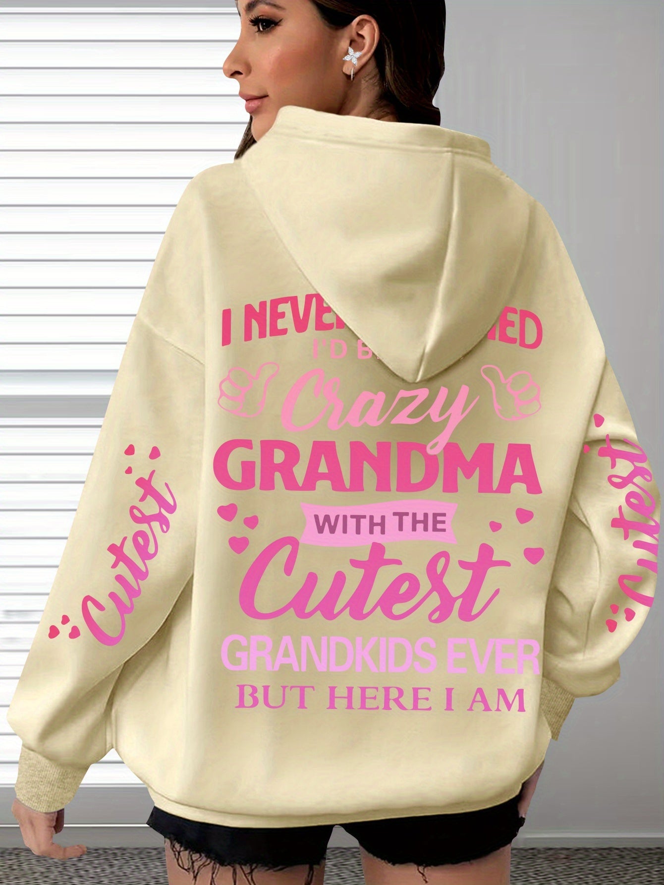 This plus-size hoodie for women blends comfort with personality, made from 100% polyester knit fabric that provides slight stretch for added flexibility. It showcases the fun "Crazy Grandma with the Cutest Grandkids Ever" printed lettering, featuring a casual pullover design and a snug hood suitable for year-round wear. Engineered for longevity and easy maintenance, it is machine washable and designed to withstand regular use. This hoodie serves as a thoughtful and functional gift for grandmothers who appreciate stylish, casual attire, with precise printing that keeps the design sharp and vibrant over time.