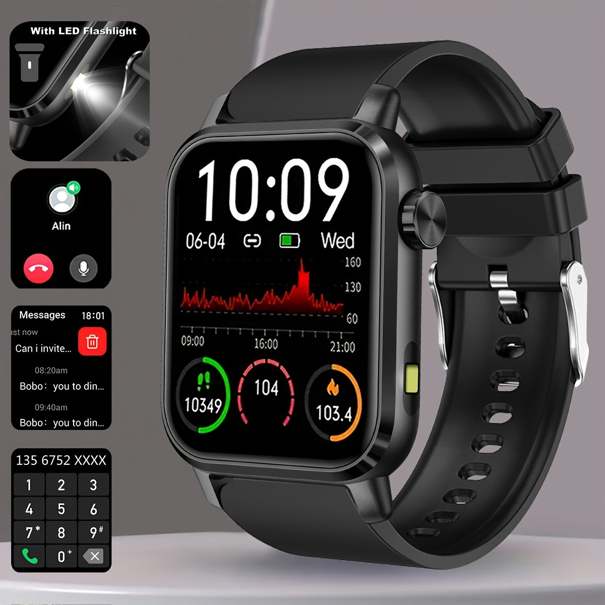 COIUSOR Smart Watch with LED Flashlight | 1.85" 3D Dynamic Display, Wireless Calls, Answer & Make Calls, Message Notifications, 100+ Sports Modes, Compatible with iOS & Android Phones, Ideal Gift for Family & Friends | Unisex
