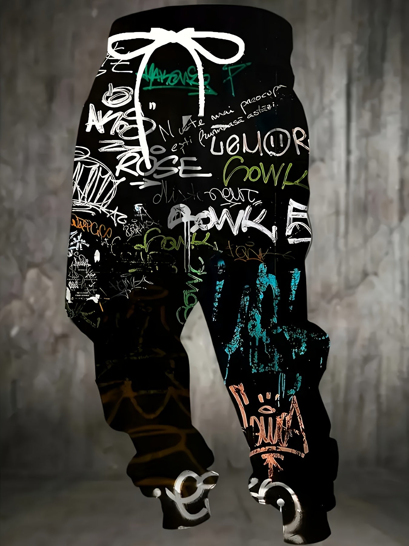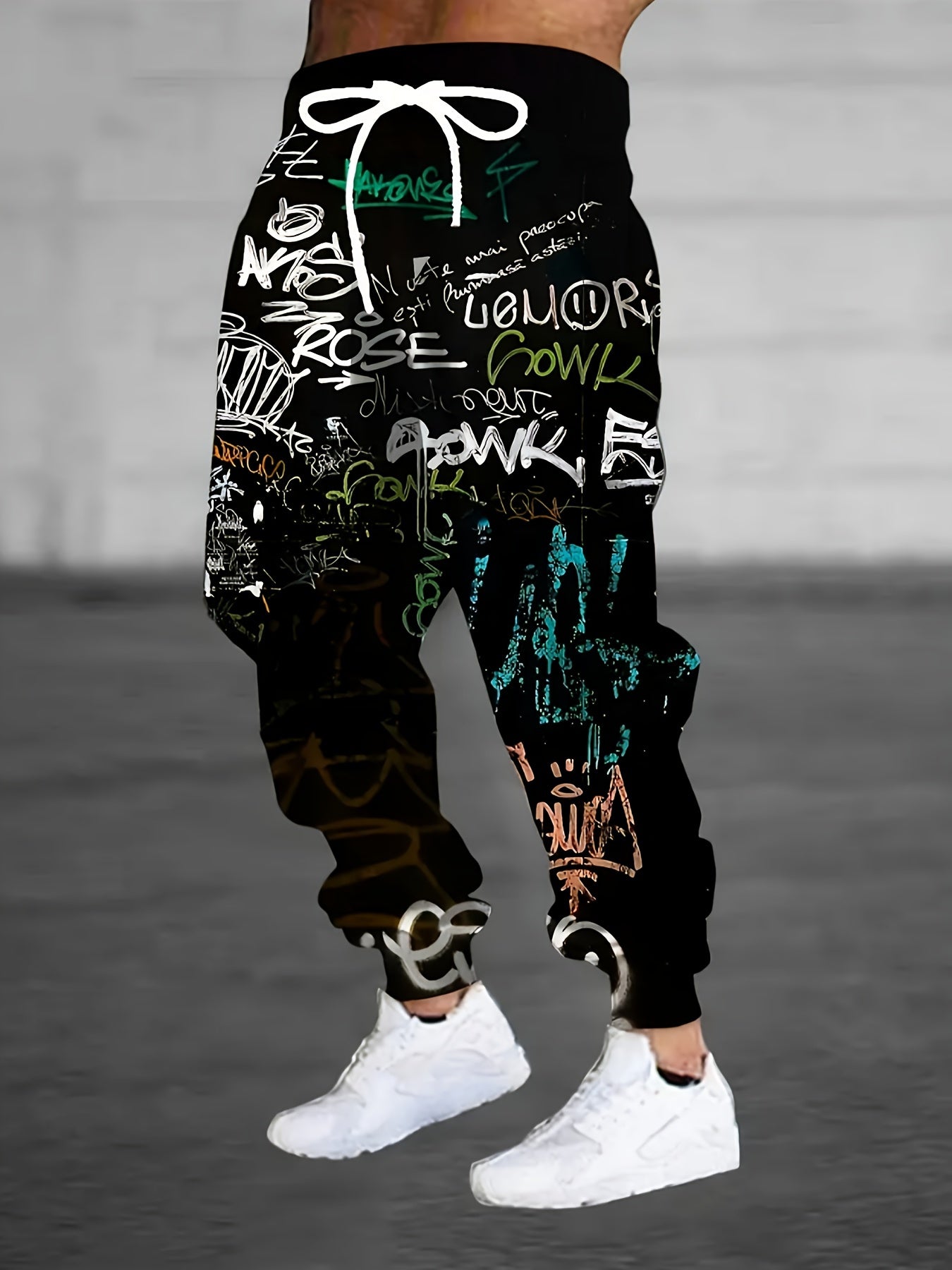 Men Urban Streetwear Joggers Full-Length Graffiti Pants