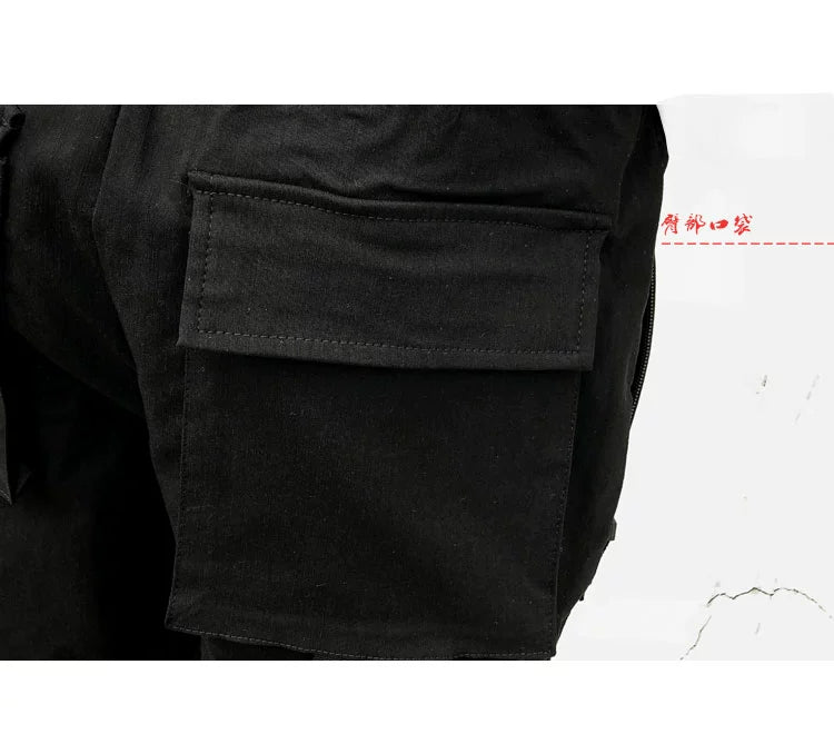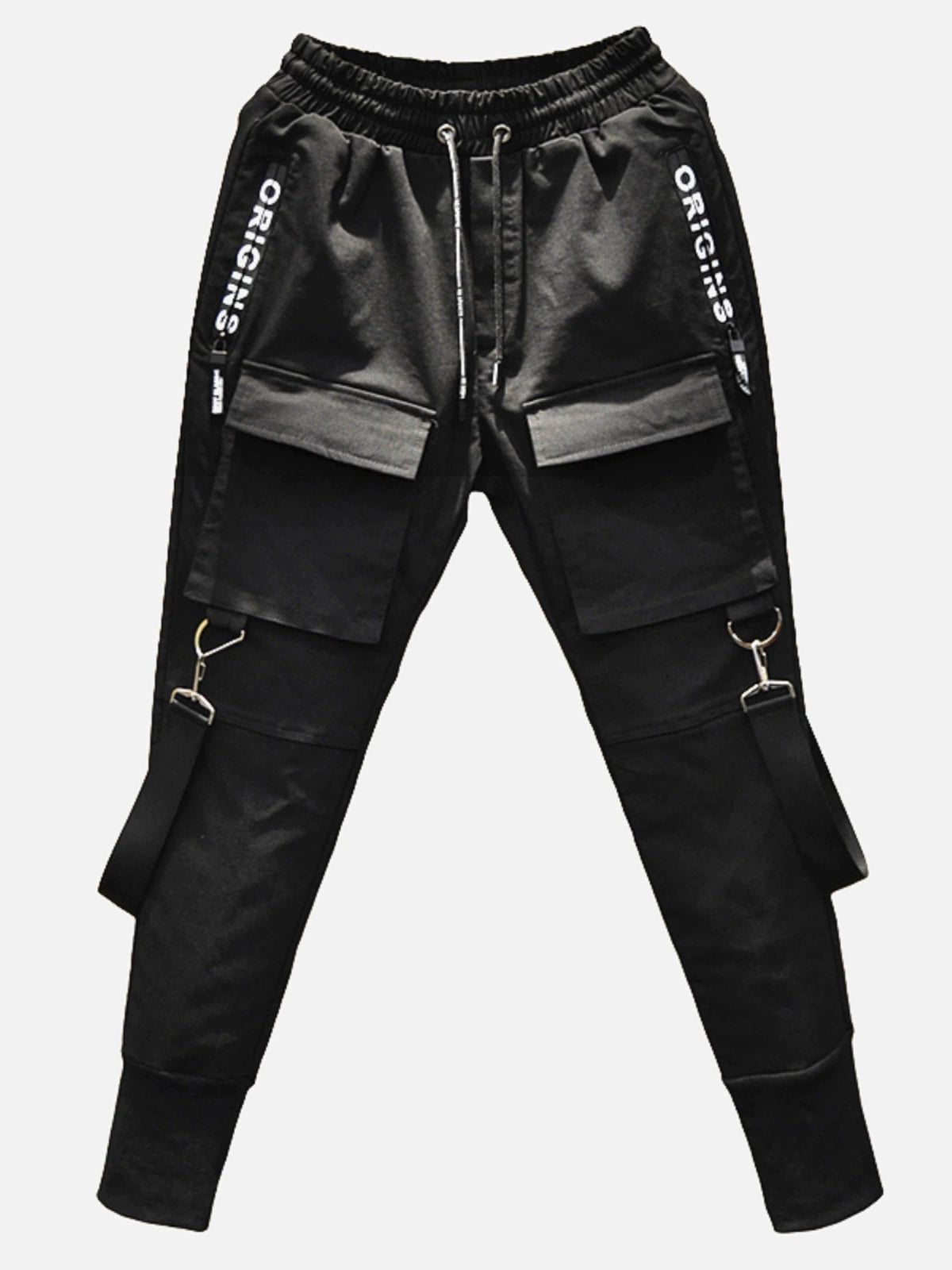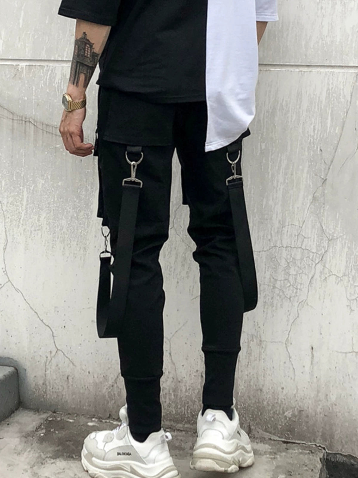 These Youth Mechanical Style Ribbon Japanese Style Fried Street Tactical Pants are a practical option for year-round wear. They feature a relaxed yet tapered design that ensures both comfort and a sleek look, with a mid-rise waist and skinny cuffs that enhance their contemporary style. Crafted from a resilient fabric blend of 95% viscose fiber and 5% spandex, these pants offer excellent breathability and flexibility for active youths. The inclusion of decorative loops adds an urban flair, while the medium fabric weight makes them suitable for layering or standalone wear. Ideal for young individuals who value a mix of functionality and modern streetwear appeal.