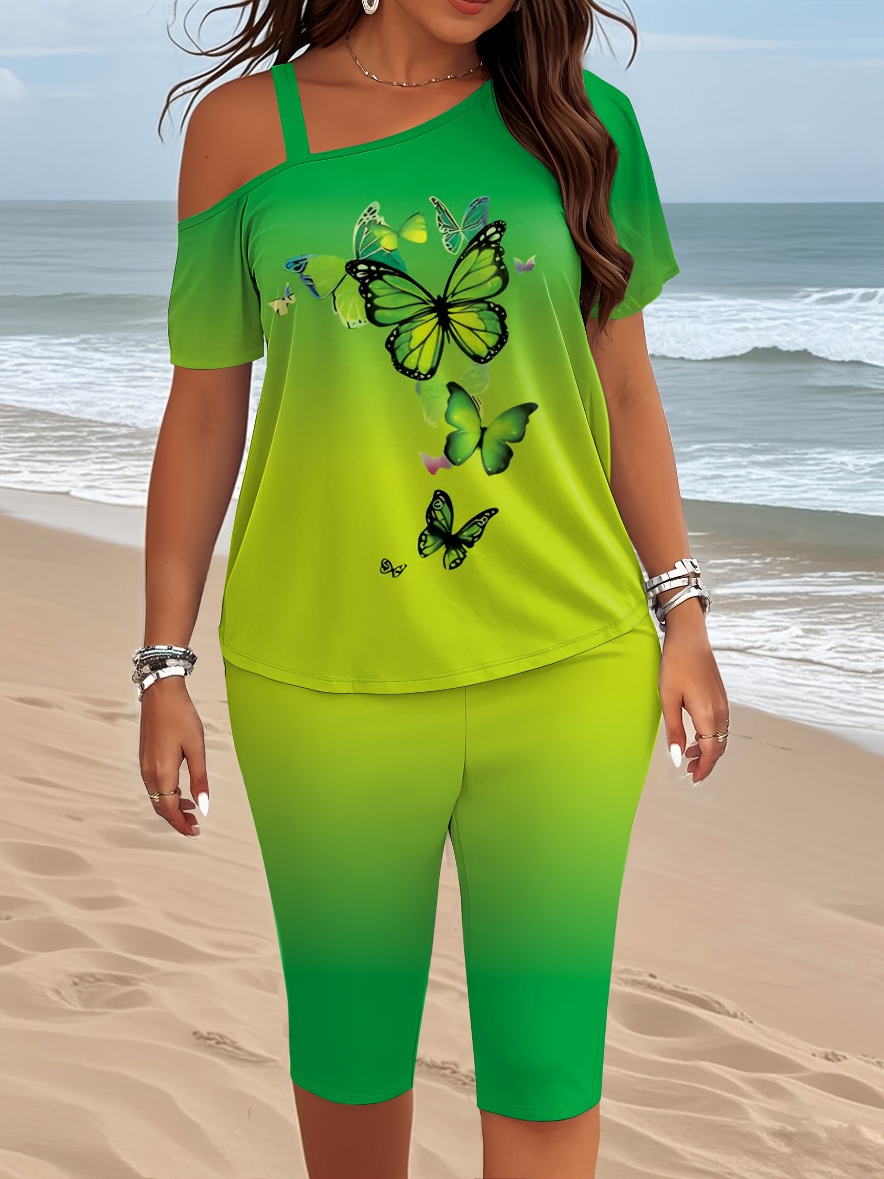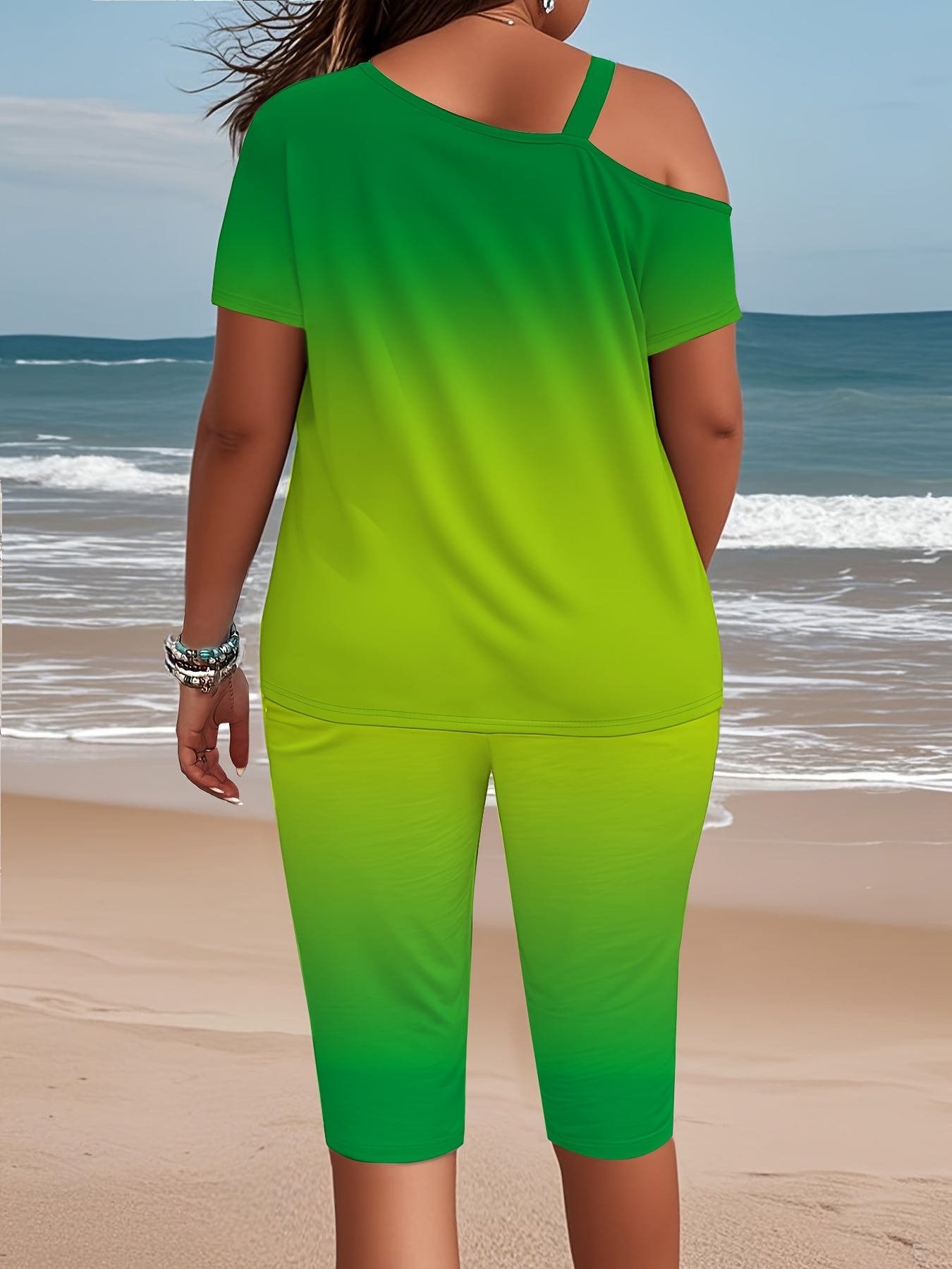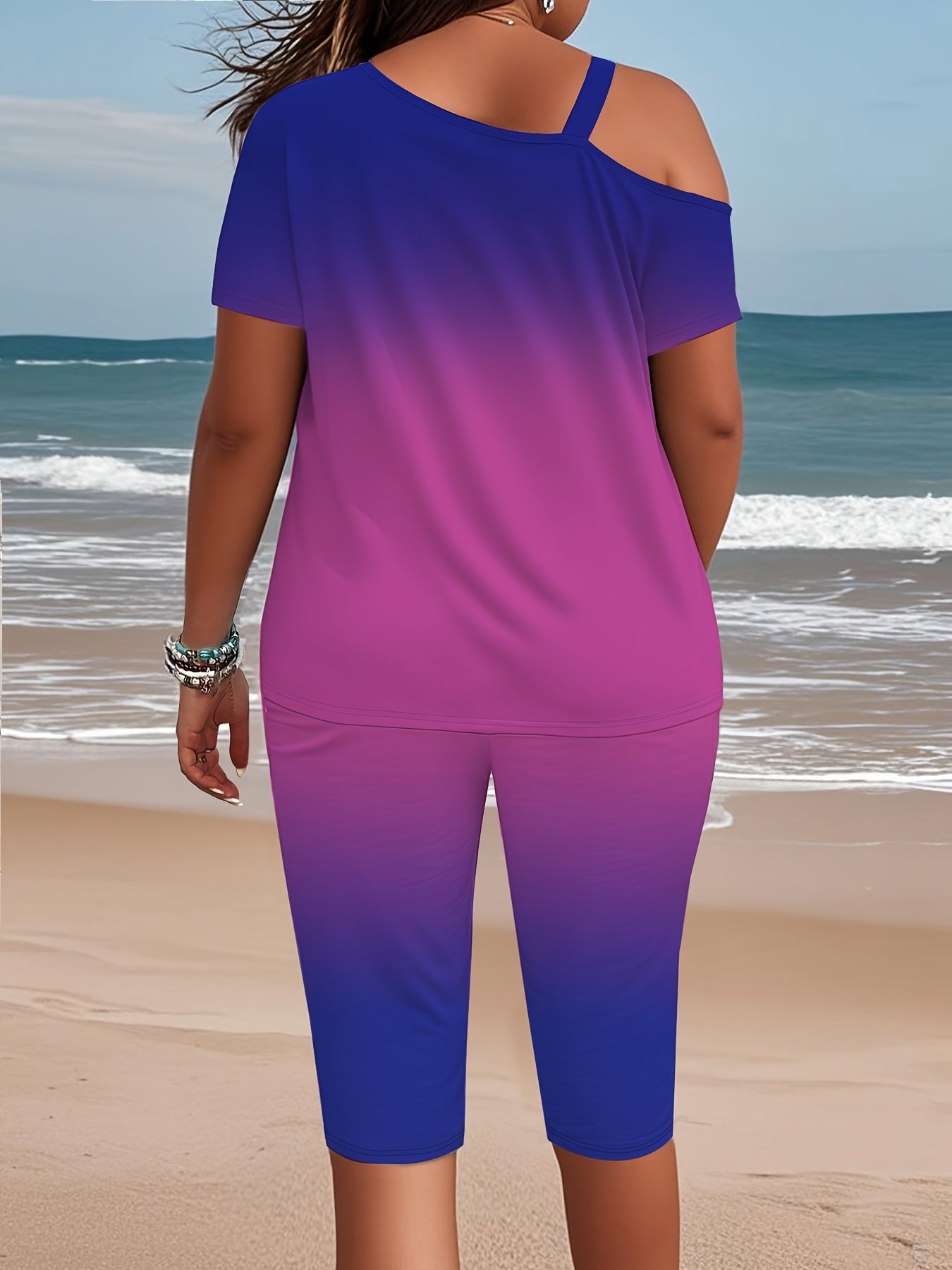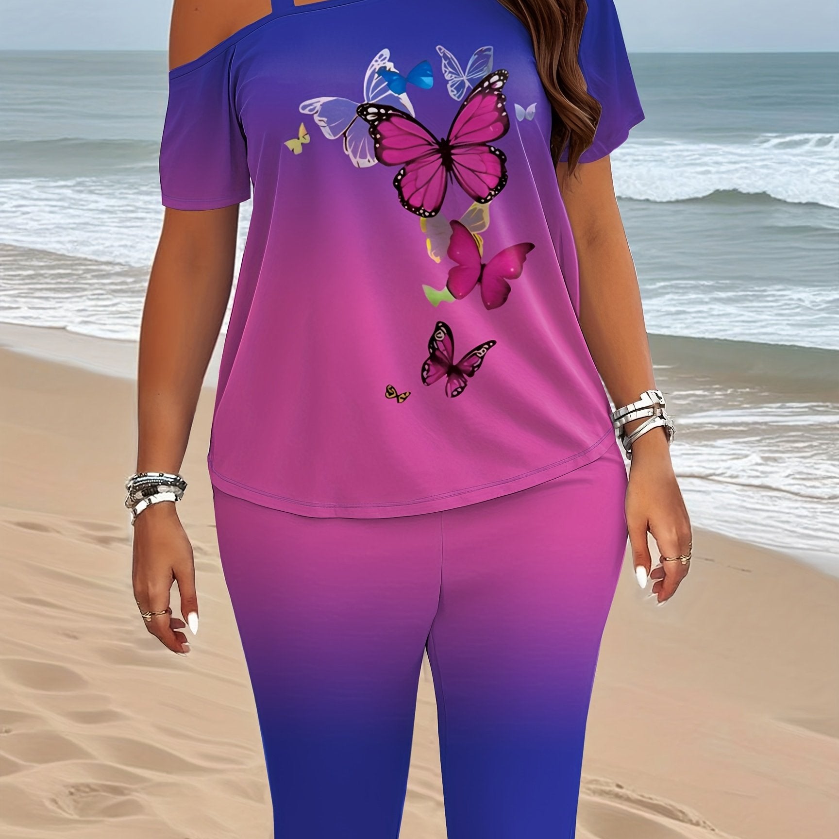This 2-piece plus-size casual short sleeve suit for women combines comfort and style, ideal for everyday wear. Made from a smooth polyester blend with medium stretch (92% polyester, 8% elastane), the fabric offers both flexibility and shape retention. The set includes a crew neck top with regular short sleeves and straight-leg shorts designed for comfort and ventilation. Featuring a distinct animal print created through random printing methods, it adds a fashionable edge. Machine washable and crafted in Fujian, this set delivers a practical yet trendy option for casual wardrobes.