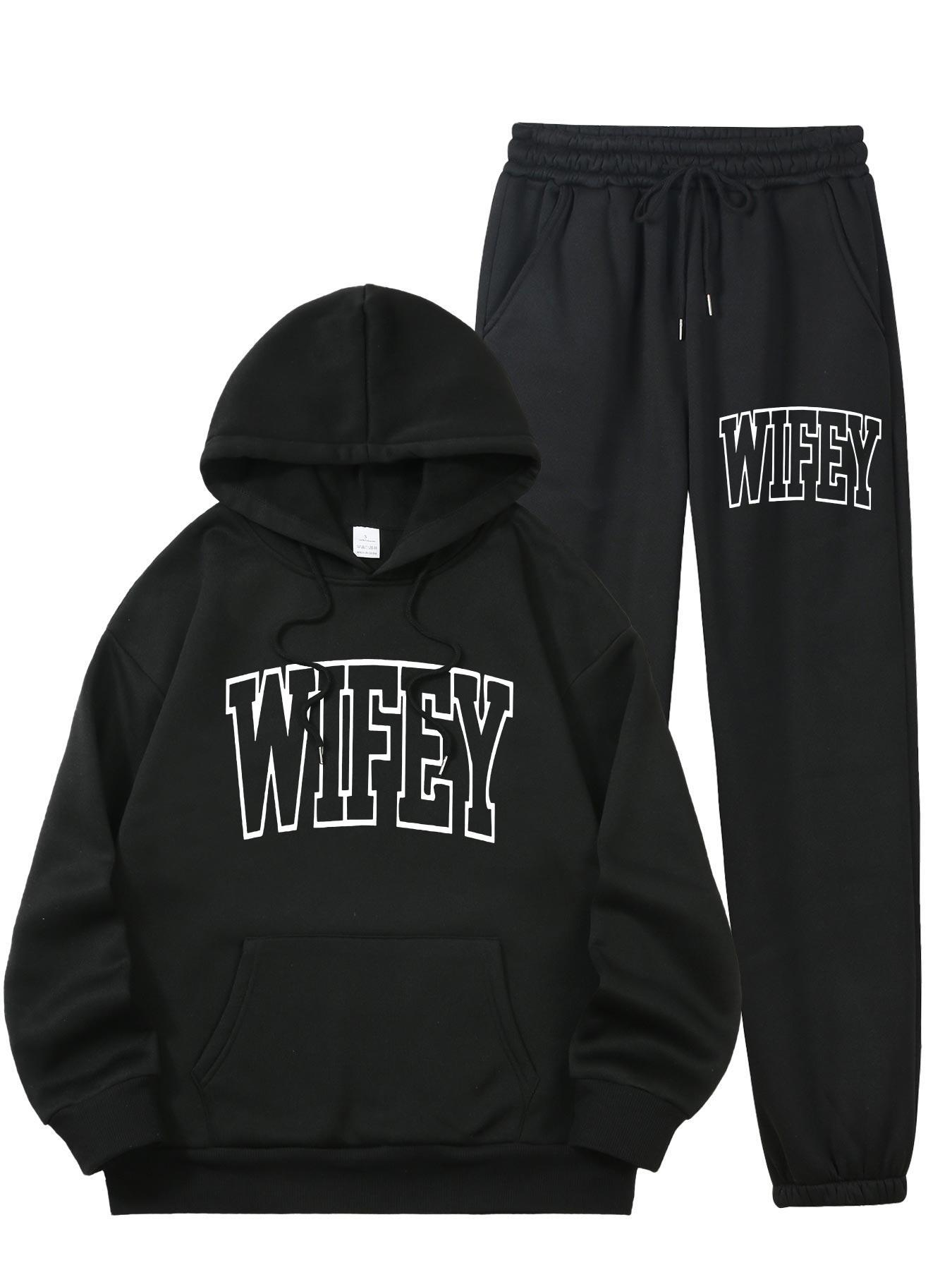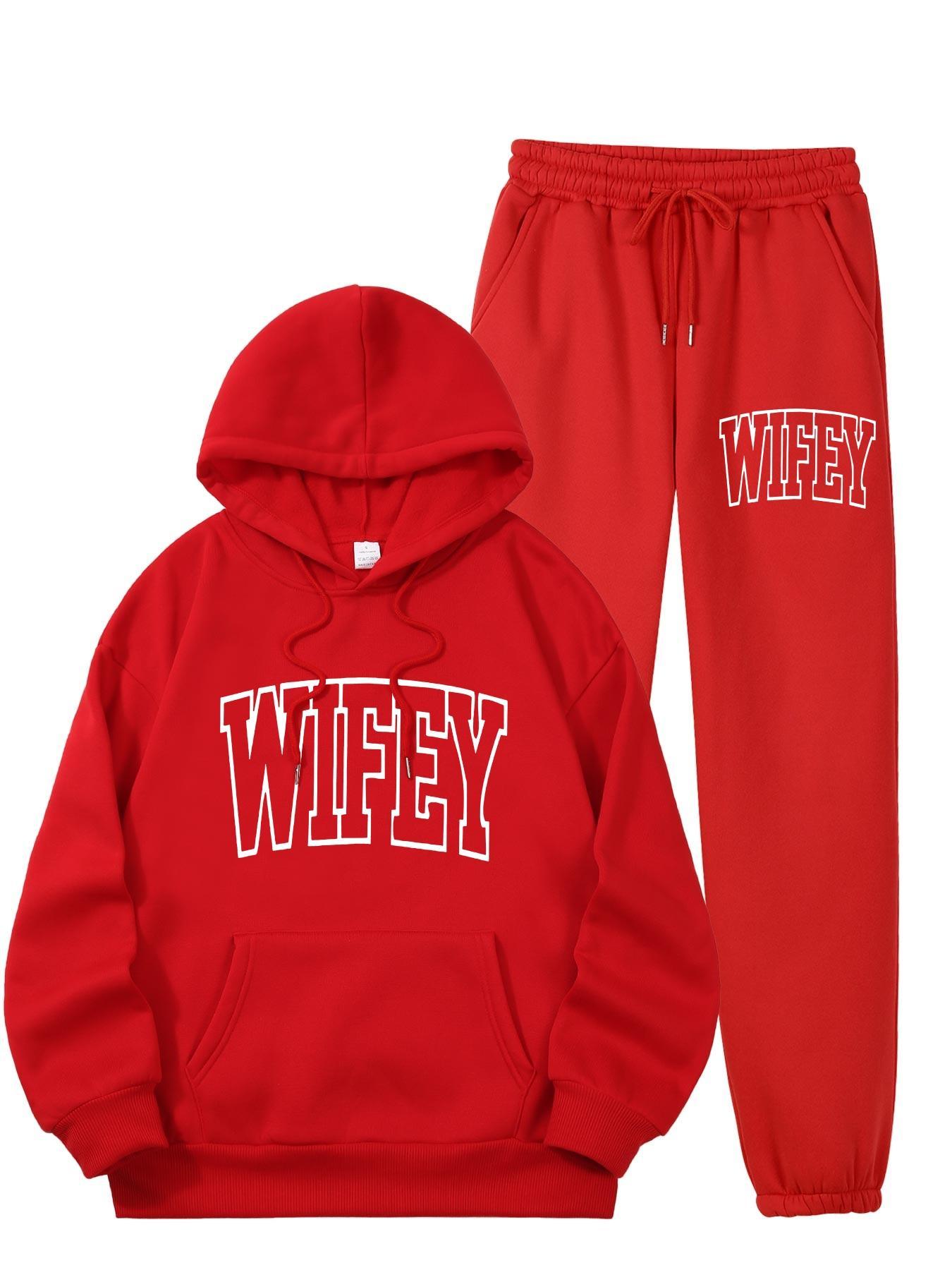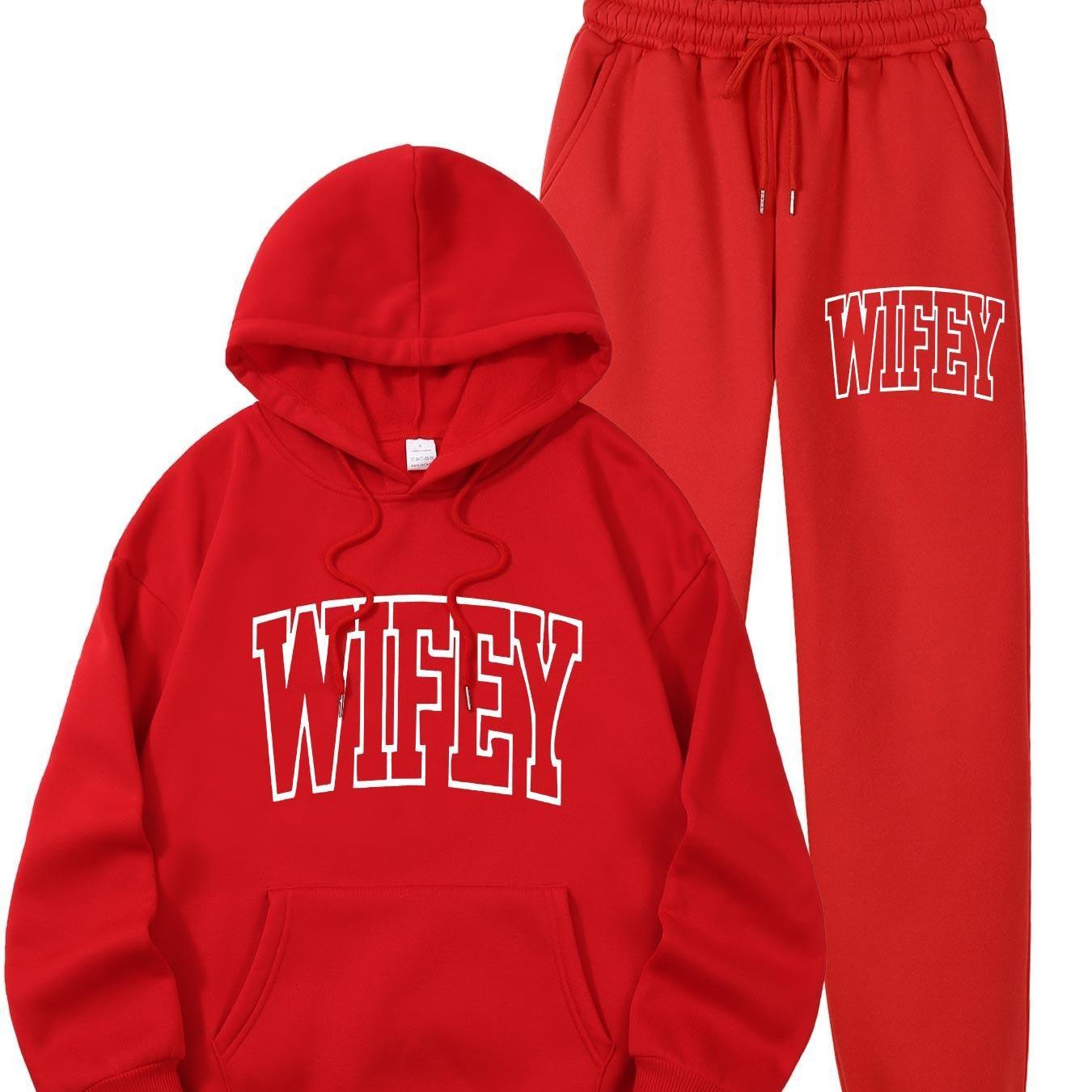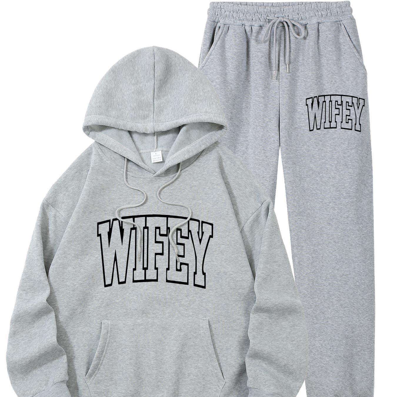 The Women’s WIFEY Printed Hoodie and Sweatshirt Set combines comfort with contemporary style, ideal for everyday use. Constructed from 100% polyester knit fabric with slight stretch, it provides a soft, adaptable fit that supports your movements all day long. The set features a traditional crew neck and a convenient front pocket, paired with a stylish "WIFEY" alphabet print for a unique flair. Designed for year-round wear, the machine-washable material retains its shape and vibrant design without requiring dry cleaning. Perfect for casual wear or relaxing at home, this set offers both ease and fashionable comfort.
