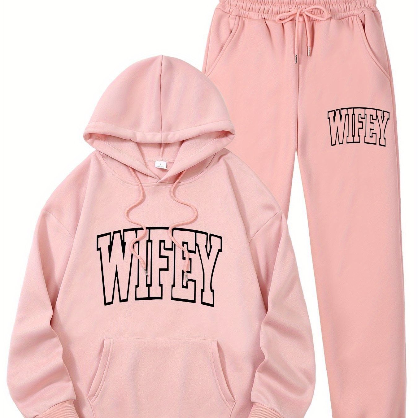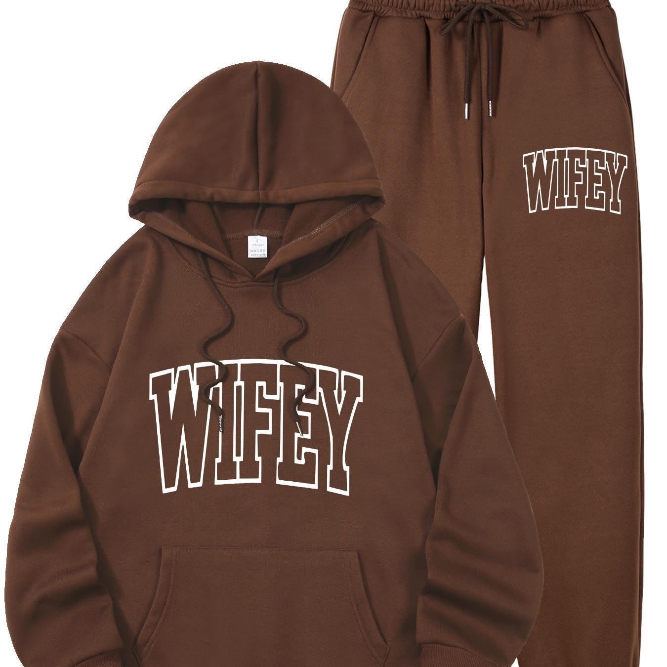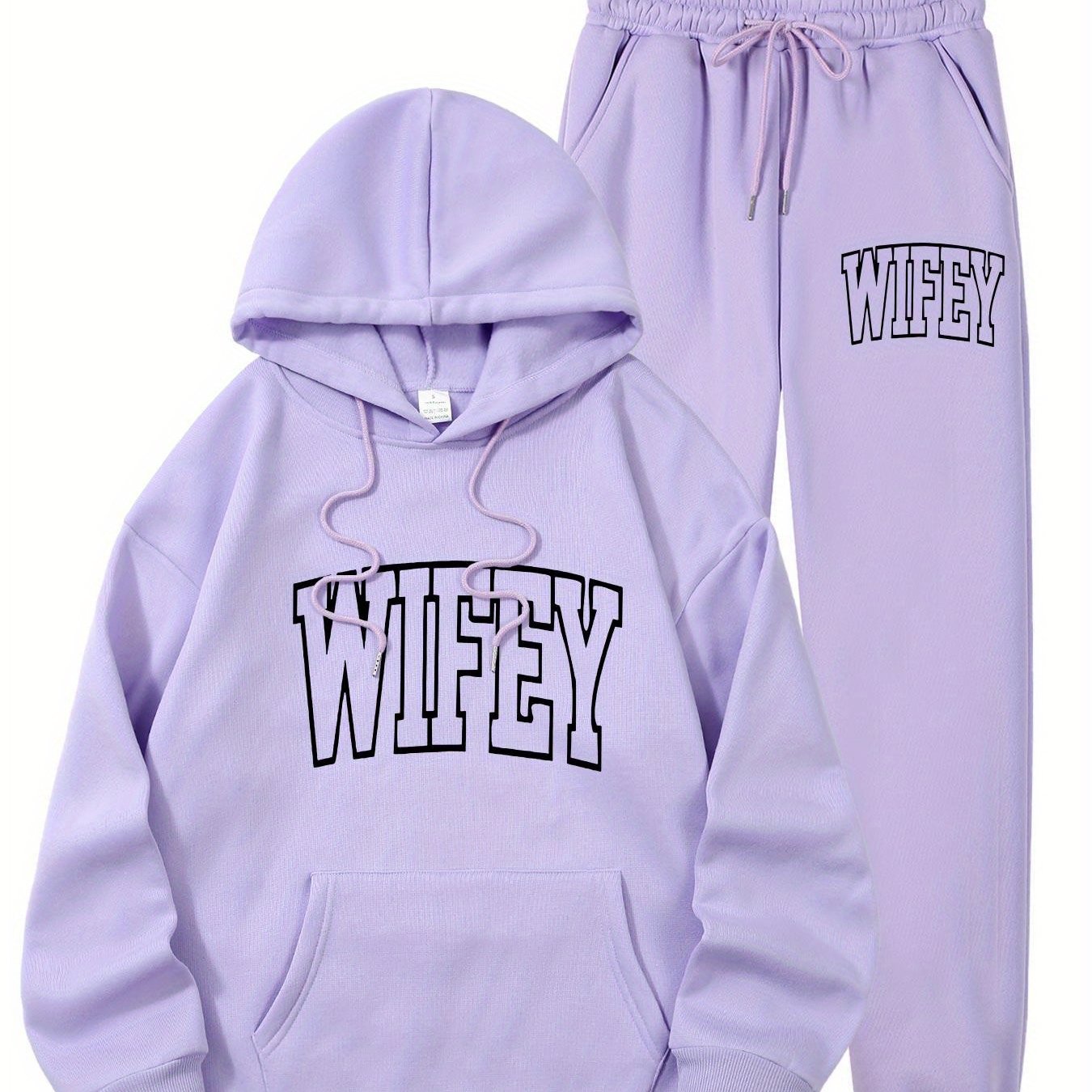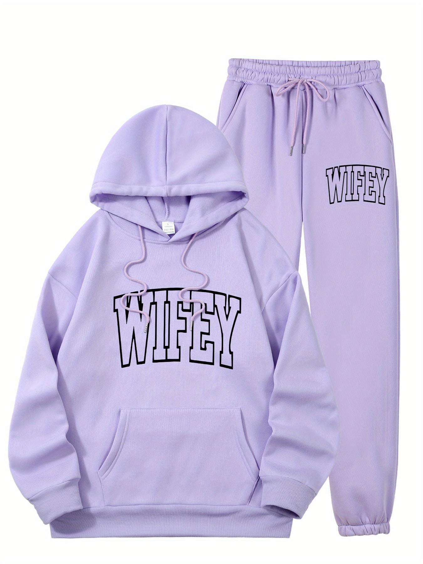 The Women’s WIFEY Printed Hoodie and Sweatshirt Set combines comfort with contemporary style, ideal for everyday use. Constructed from 100% polyester knit fabric with slight stretch, it provides a soft, adaptable fit that supports your movements all day long. The set features a traditional crew neck and a convenient front pocket, paired with a stylish "WIFEY" alphabet print for a unique flair. Designed for year-round wear, the machine-washable material retains its shape and vibrant design without requiring dry cleaning. Perfect for casual wear or relaxing at home, this set offers both ease and fashionable comfort.