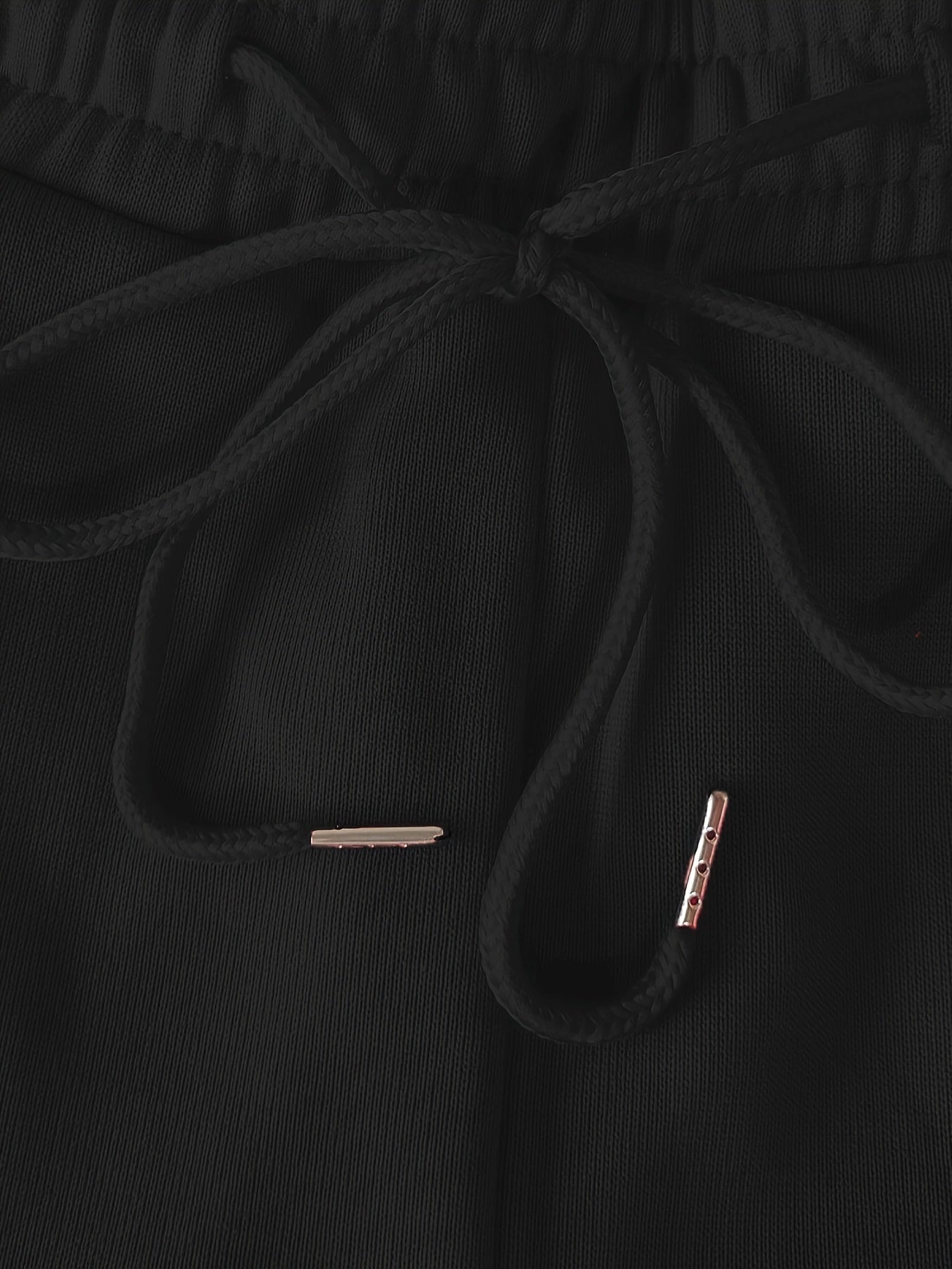 This women's casual set includes a long-sleeve crop top and joggers, made from a 100% polyester blend with slight elasticity to ensure ease of movement. The crop top features a crew neckline for a flattering fit, while the joggers are equipped with drawstring pockets for added functionality and style. Constructed from breathable knit fabric and detailed with precise alphabet positioning printing, this lightweight ensemble is ideal for year-round casual wear. It is machine washable for easy maintenance and designed to retain its shape and softness. Made in Fujian, China, this set offers a fashionable and comfortable option for everyday use.
