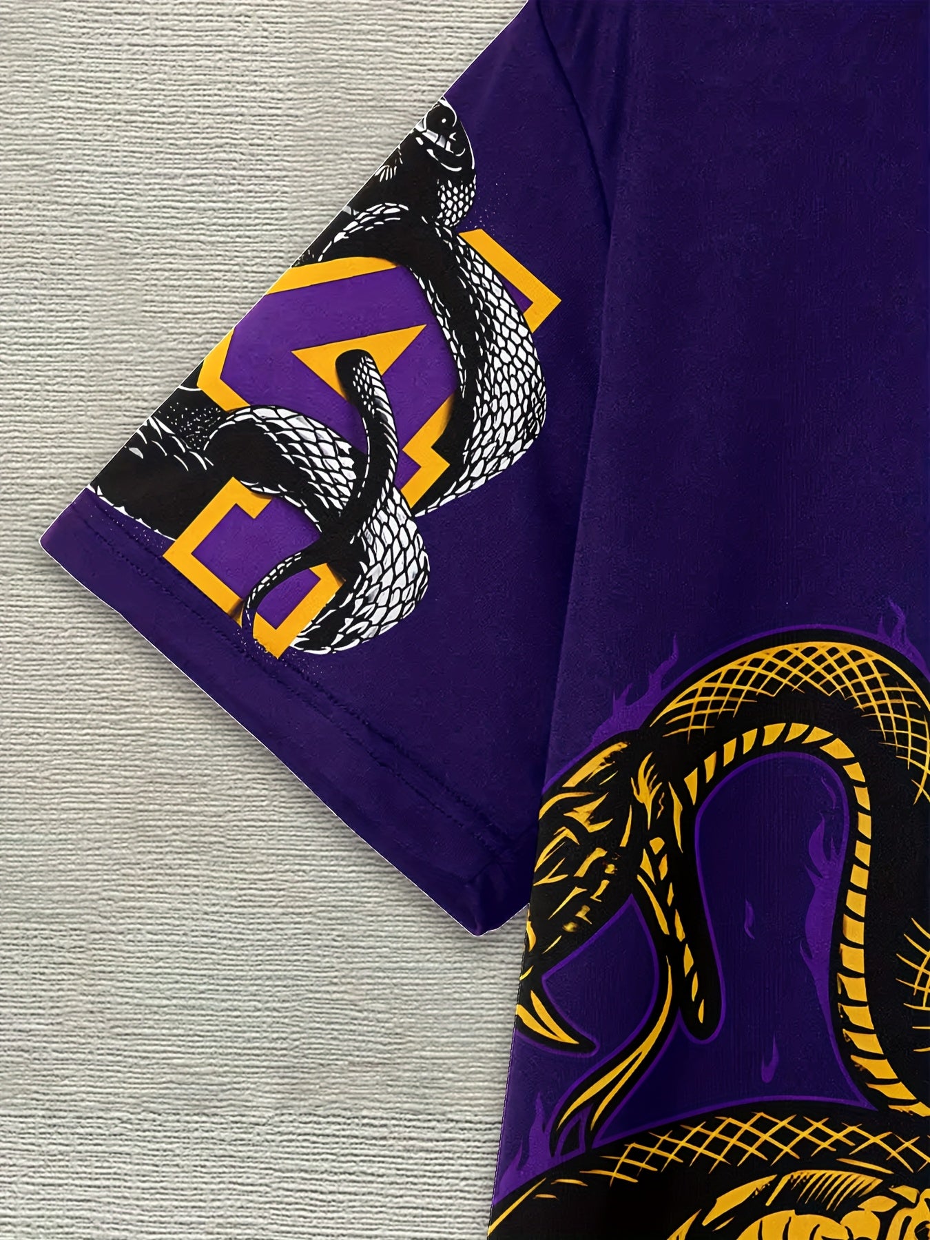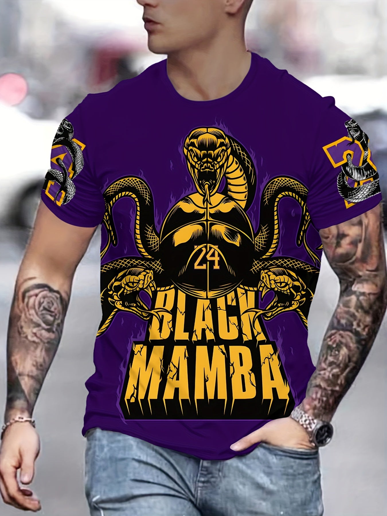 This men’s Black Mamba 3D Print T-shirt showcases a bold graphic featuring a snake and skull design that makes a strong style statement. Made from 100% polyester with slight stretch, the knit fabric delivers a comfortable regular fit that adapts to your movements. Its classic crew neck adds to the casual vibe, making it an ideal choice for everyday wear. The detailed graphic is enhanced by random printing techniques, giving the design depth and visual interest. Easy to maintain, this machine-washable tee requires no dry cleaning and is crafted in Jiangxi, China, offering a durable and stylish option for your casual wardrobe.