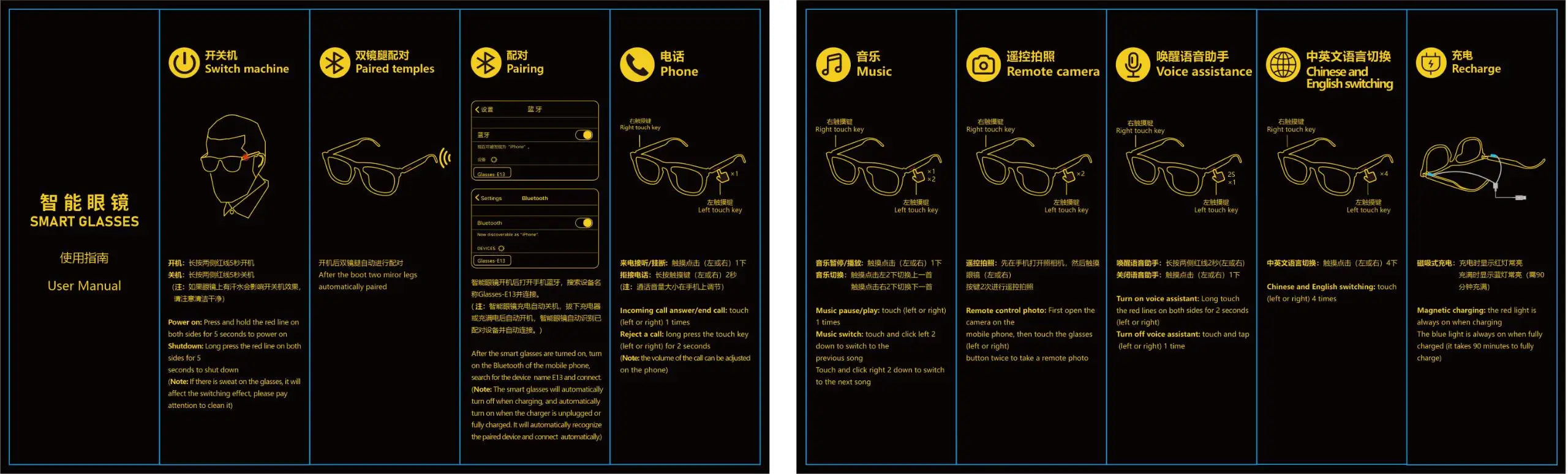 Model: E13 Smart Eyewear Blue tooth Glasses