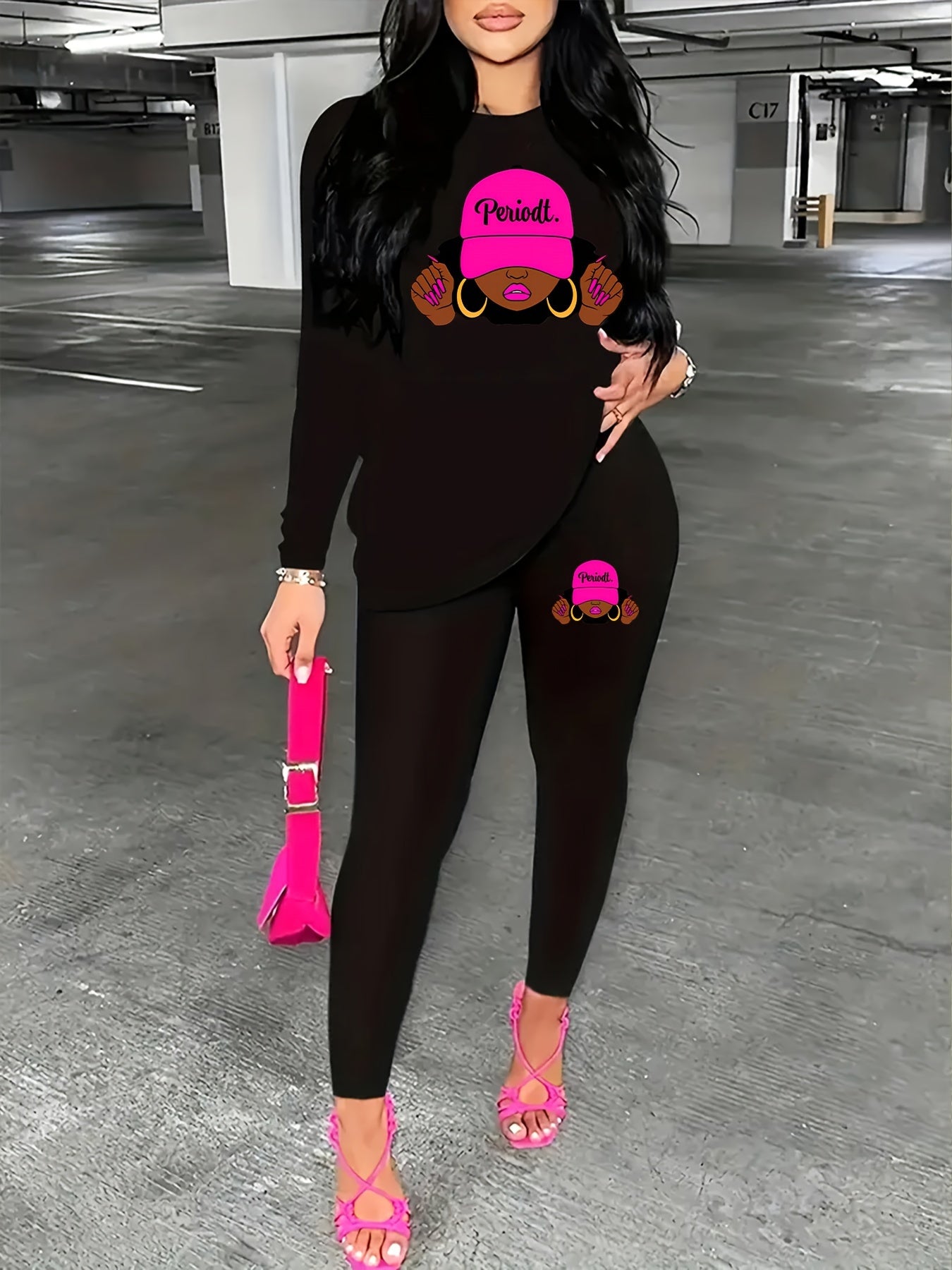 The P1_1 CC Black Long Sleeve Long Pants Set is designed with a crew neck and made from a medium-stretch knit fabric consisting of 92% polyester and 8% elastane. This coordinated set features long sleeves and pants adorned with high-quality cartoon positioning prints that maintain their sharpness. It is practical for everyday use, being machine washable without the need for dry cleaning. Originating from Fujian, China, the polyester-elastane blend provides both comfort and breathability, making it suitable for relaxed wear while preserving a sleek and contemporary appearance.