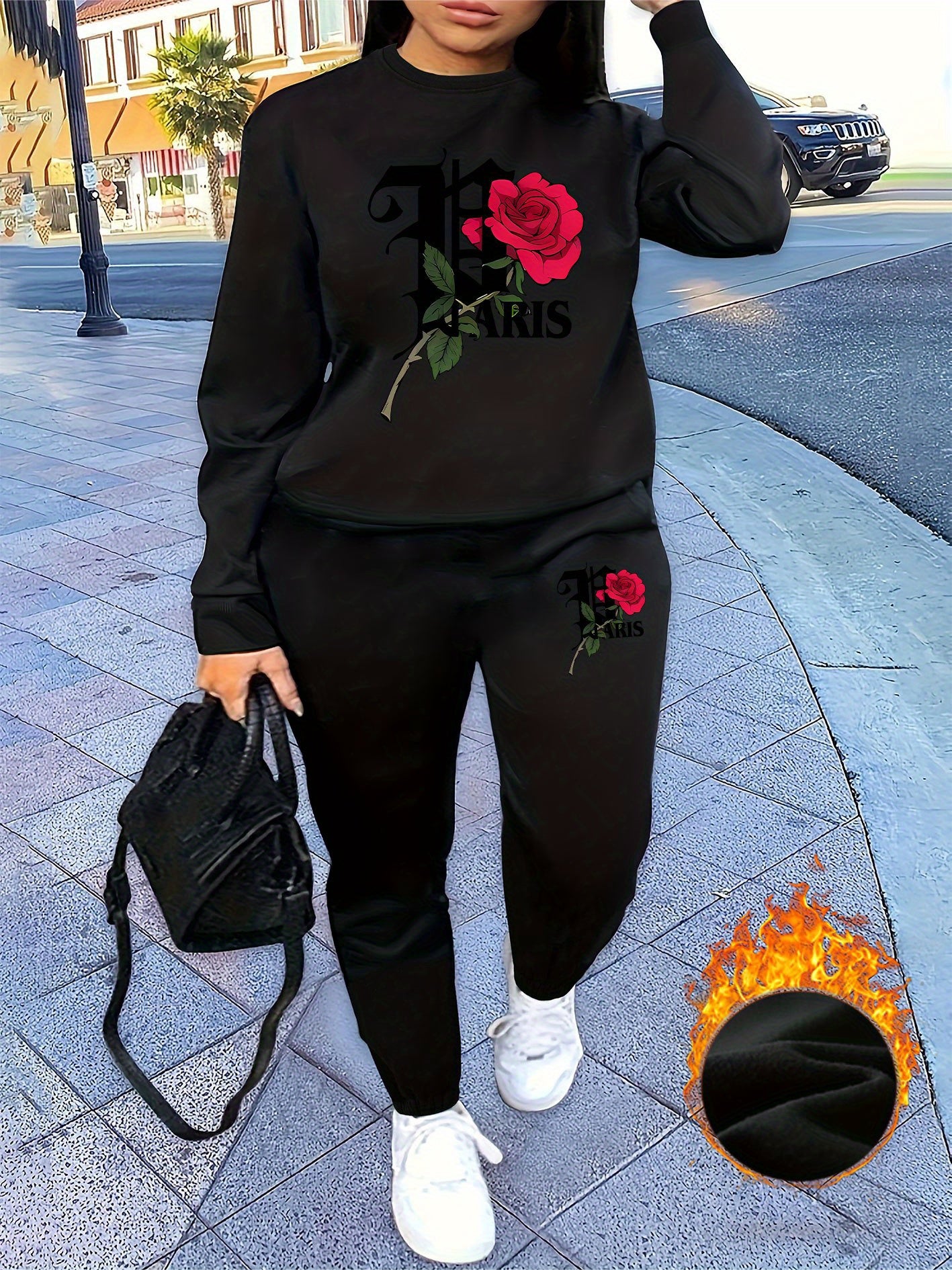 This stylish women’s casual set features a floral printed fleece sweatshirt paired with matching pants, both made from 100% polyester knit fabric with slight stretch for comfort and ease of movement. The sweatshirt is designed with a classic crew neck and detailed floral positioning print that adds a delicate, feminine appeal. Suitable for year-round wear, the breathable fleece provides warmth without feeling heavy, perfect for relaxed settings or casual outings. Manufactured in Guangdong, China, this durable set is simple to maintain with machine washing recommended and dry cleaning not advised.
