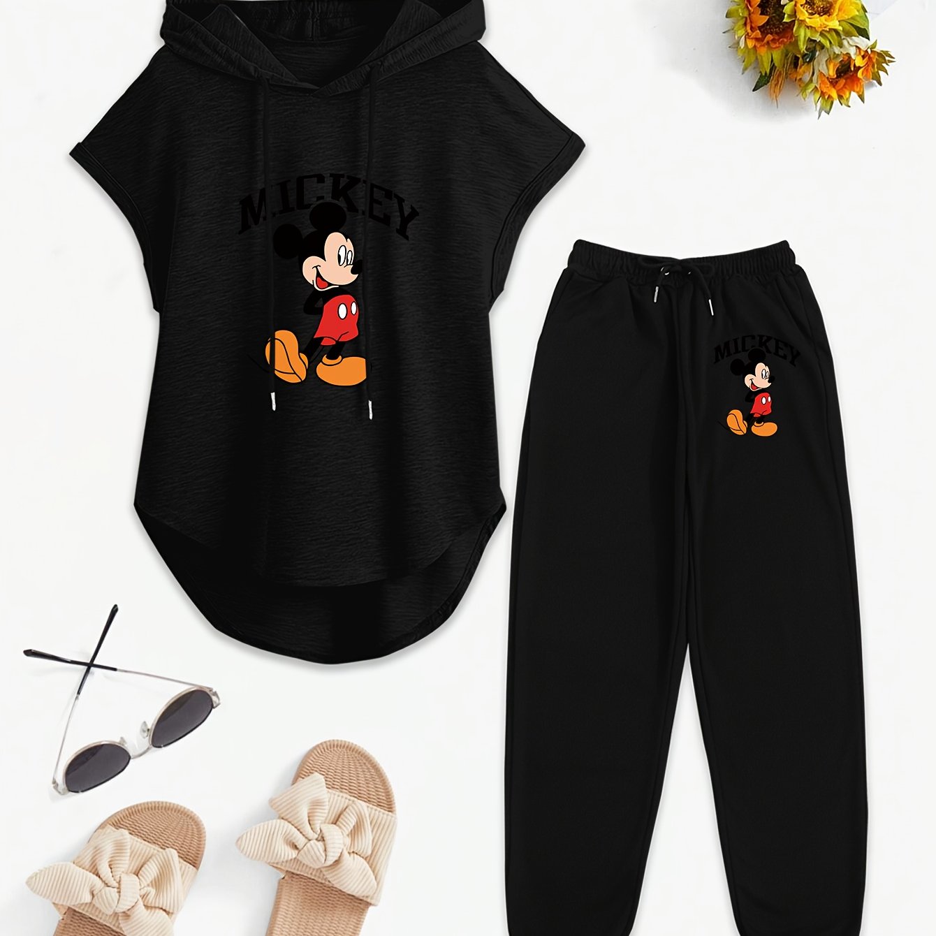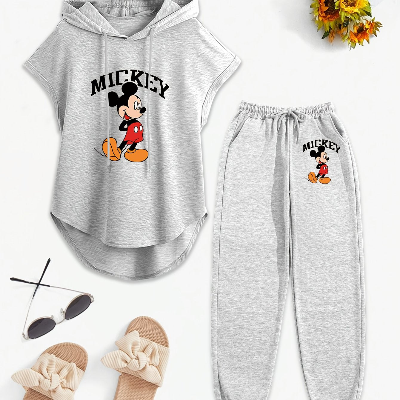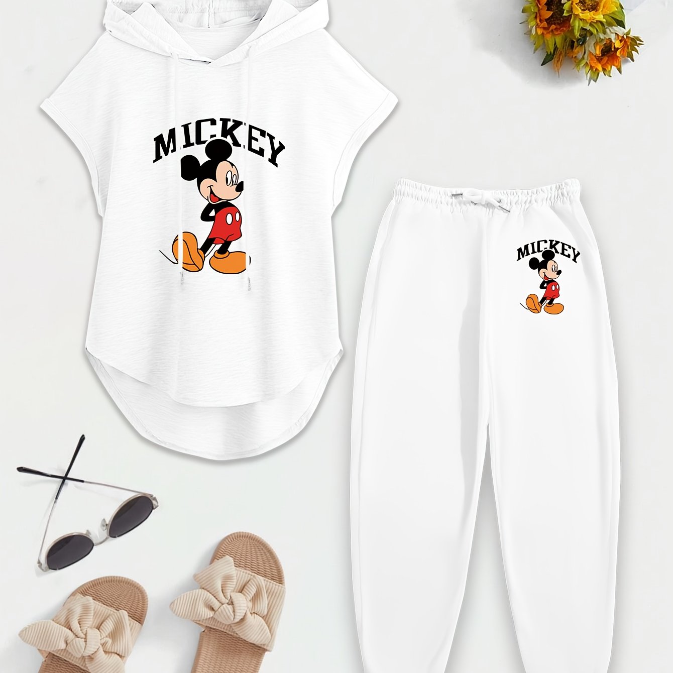 This licensed women’s summer set features a sleeveless hooded top with a functional drawstring, paired with letter print pants crafted for casual ease. Both garments are constructed from 100% polyester with micro elasticity, providing a lightweight, breathable fit that moves comfortably with you. The pants include an elastic waistband for adjustable support, while the top incorporates pockets and a hood to enhance style and practicality. Made from knit fabric in Guangdong, China, and printed using precise positioning techniques, this machine-washable outfit is perfect for spring and summer, combining fun cartoon-inspired graphics with relaxed everyday wear.