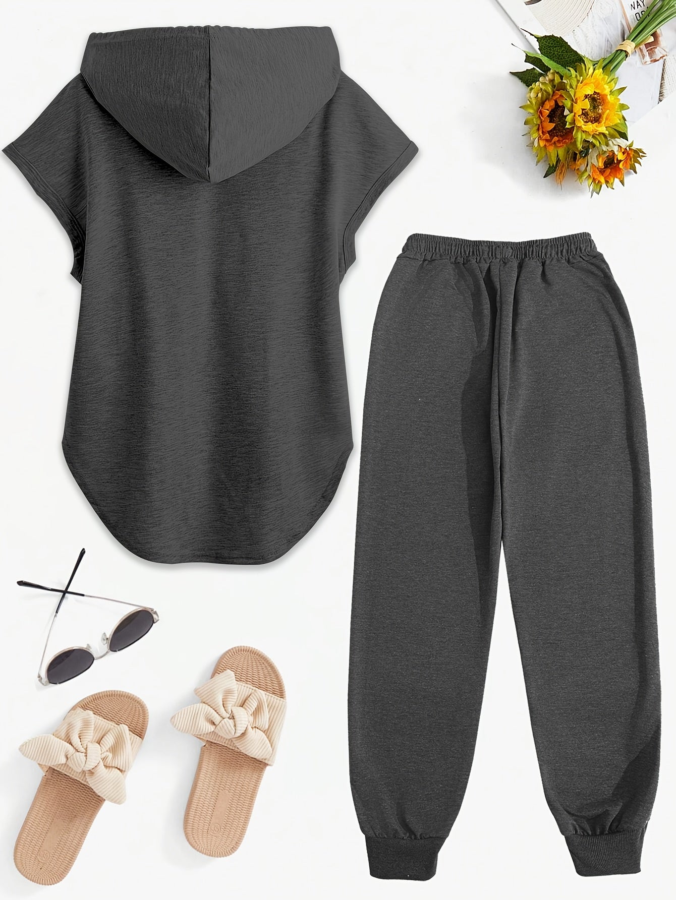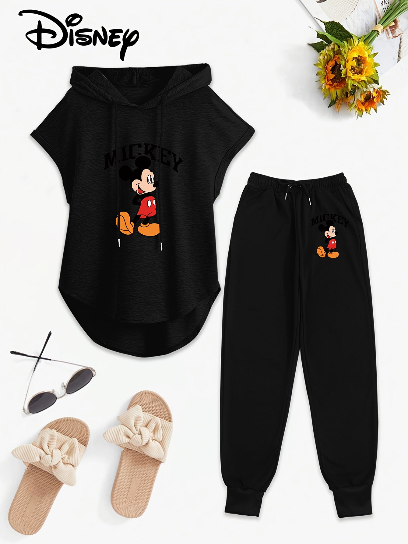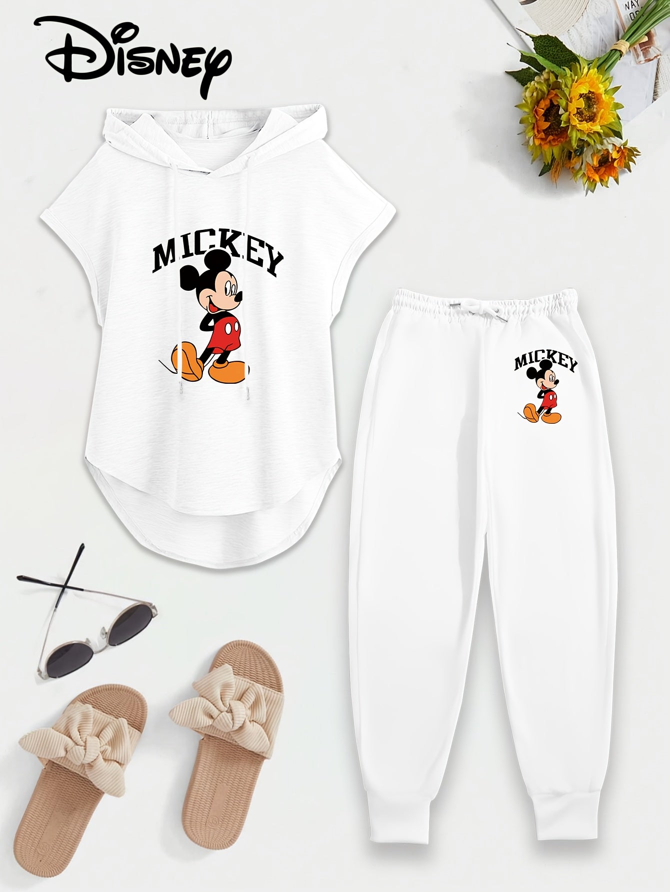 This licensed women’s summer set features a sleeveless hooded top with a functional drawstring, paired with letter print pants crafted for casual ease. Both garments are constructed from 100% polyester with micro elasticity, providing a lightweight, breathable fit that moves comfortably with you. The pants include an elastic waistband for adjustable support, while the top incorporates pockets and a hood to enhance style and practicality. Made from knit fabric in Guangdong, China, and printed using precise positioning techniques, this machine-washable outfit is perfect for spring and summer, combining fun cartoon-inspired graphics with relaxed everyday wear.