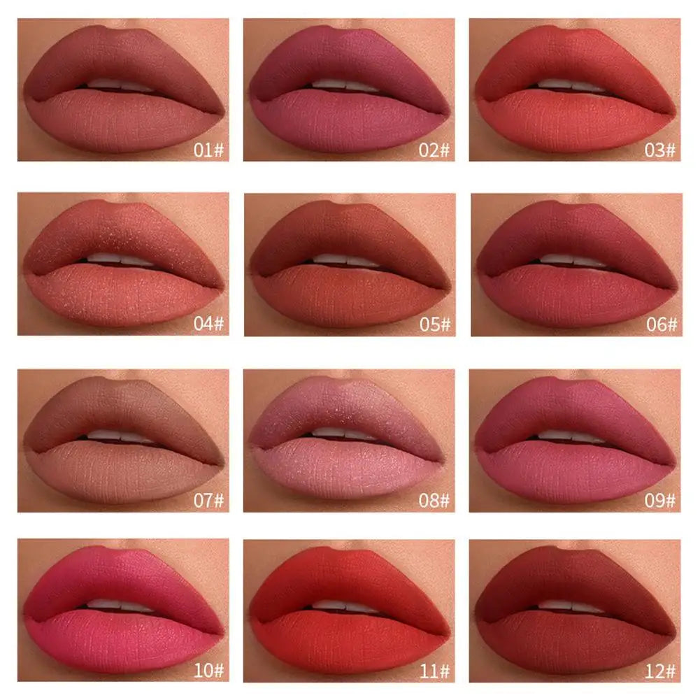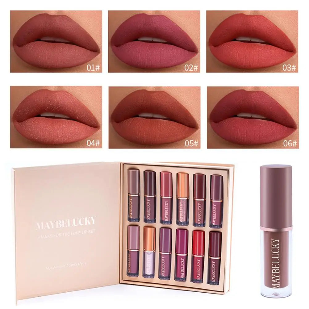 12 Color Matte Liquid Lipstick Kit Non Stick Cup Waterproof Lip Gloss Long-lasting Non-smudging Lipstick That Doesn't Stain Cup