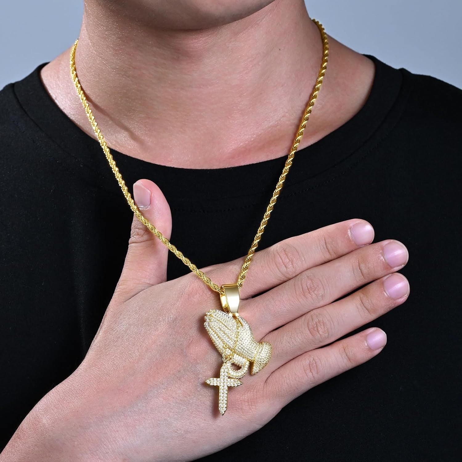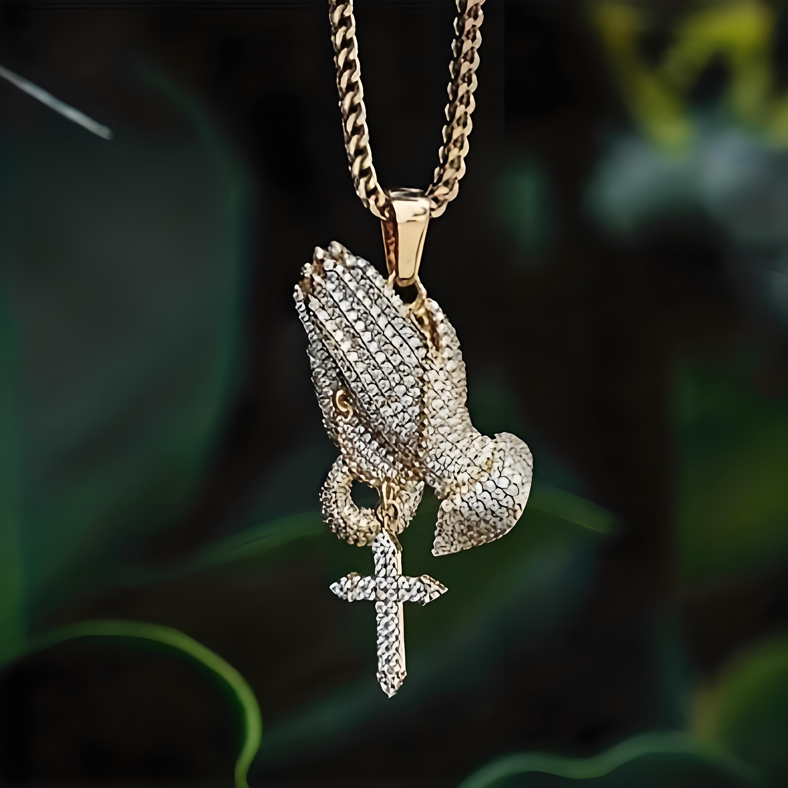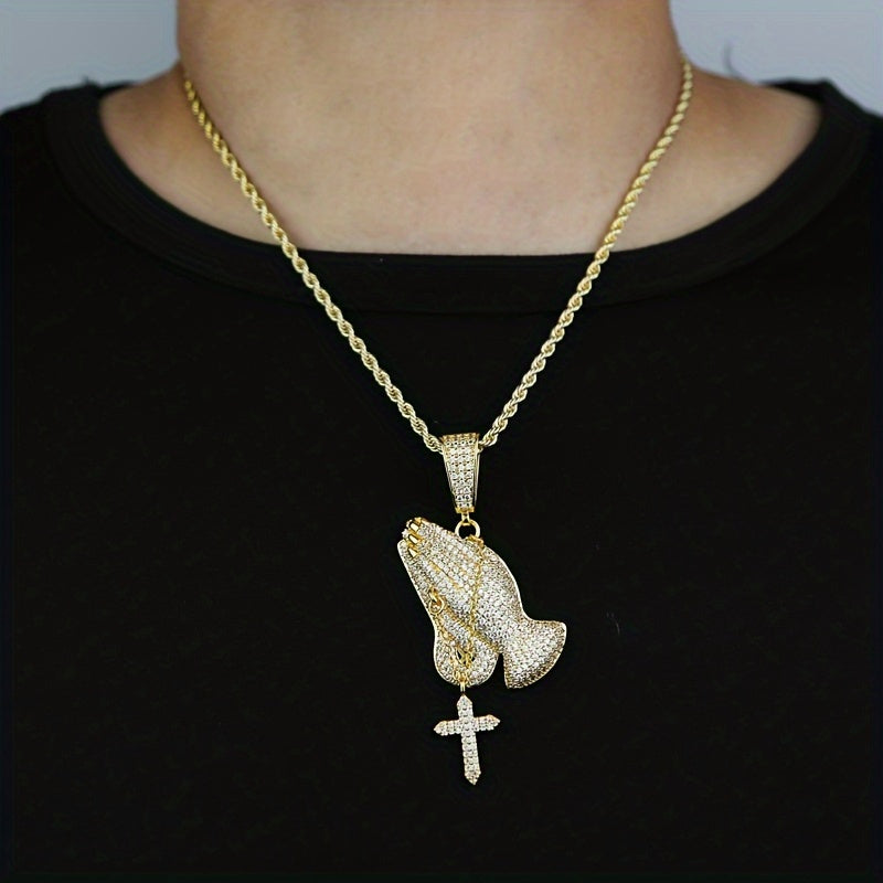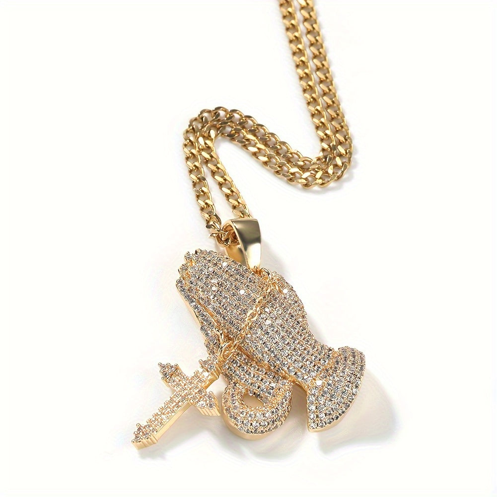 1pc Cross Pendant Necklace with Praying Hands Design - Classic, Stylish Religious Faith Symbol & Lucky Charm - Versatile Accessory for Beach, Valentine's Gifts & Daily Wear