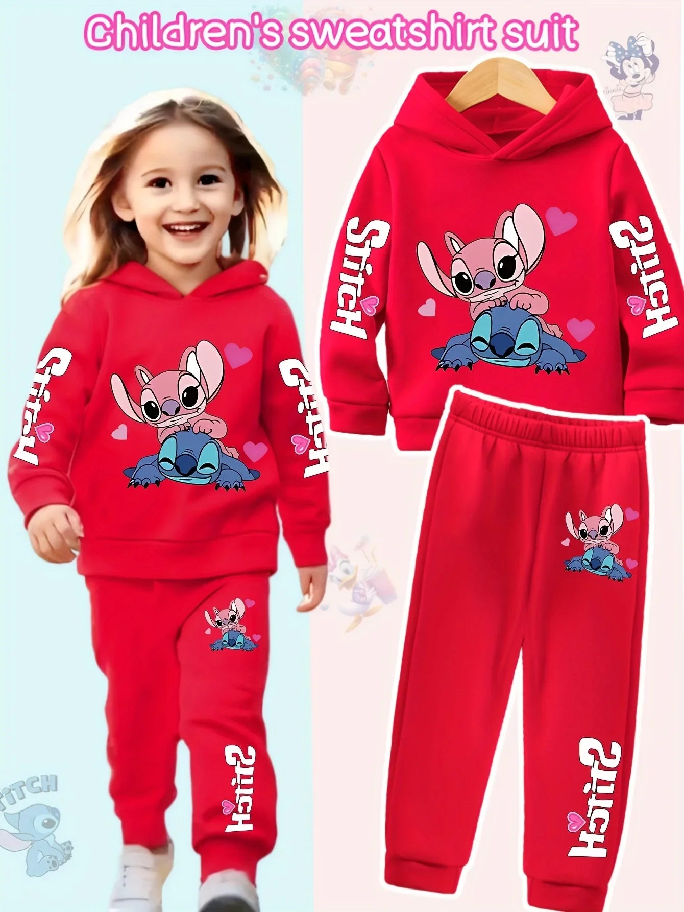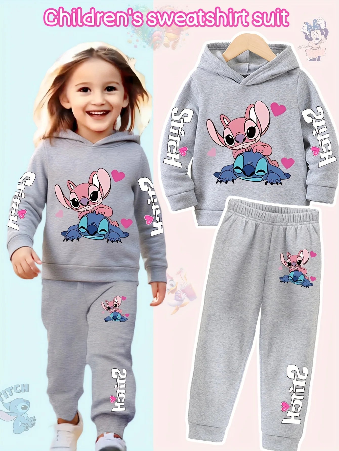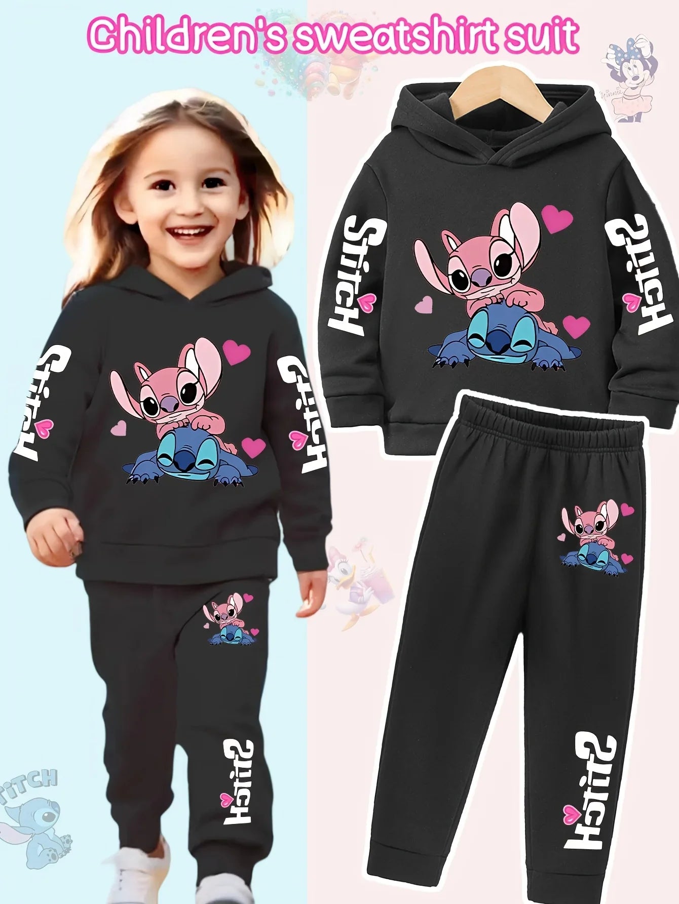 2025 Y2k Two-Piece Clothing Lilo and Stitch Hoodie Kids Long Sleeve Girls Sweatshirt + Pants Set for Baby Boys Clothing