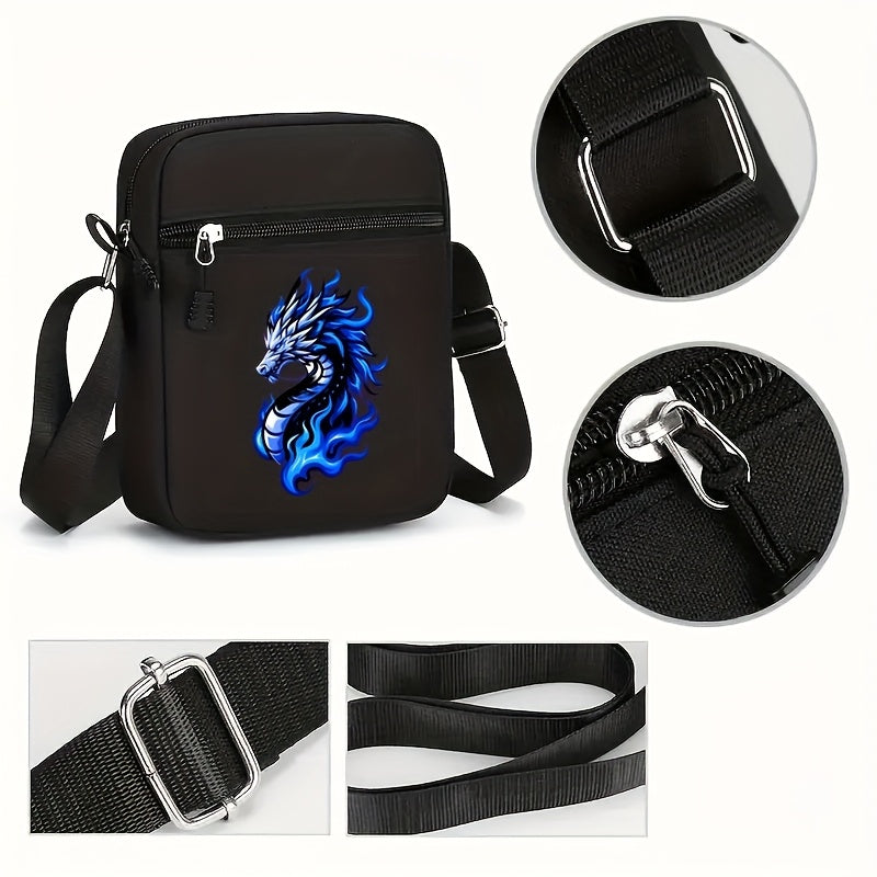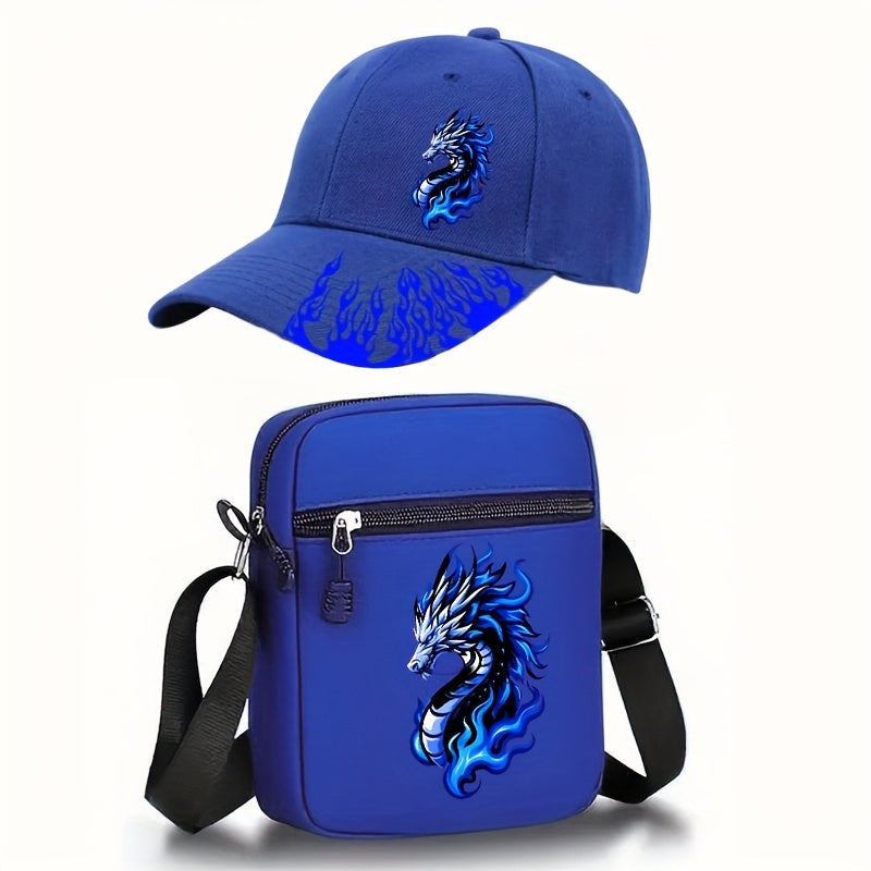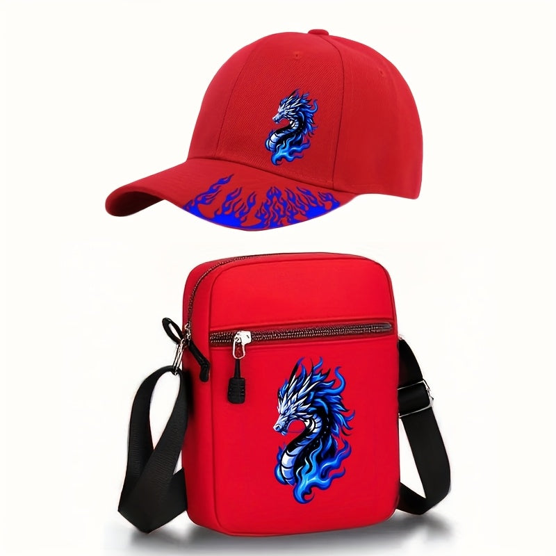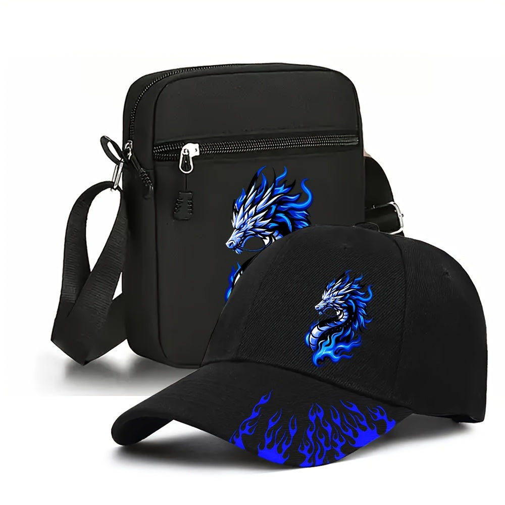 2pcs Flame Dragon Print Neutral Curved Brim Hip-hop Baseball Cap And Messenger Bag, Y2k Style Street Fashion Outdoor Sports Baseball Cap Curved Brim Hat And Bag, Adjustable, Gift for Yourself Or Friends