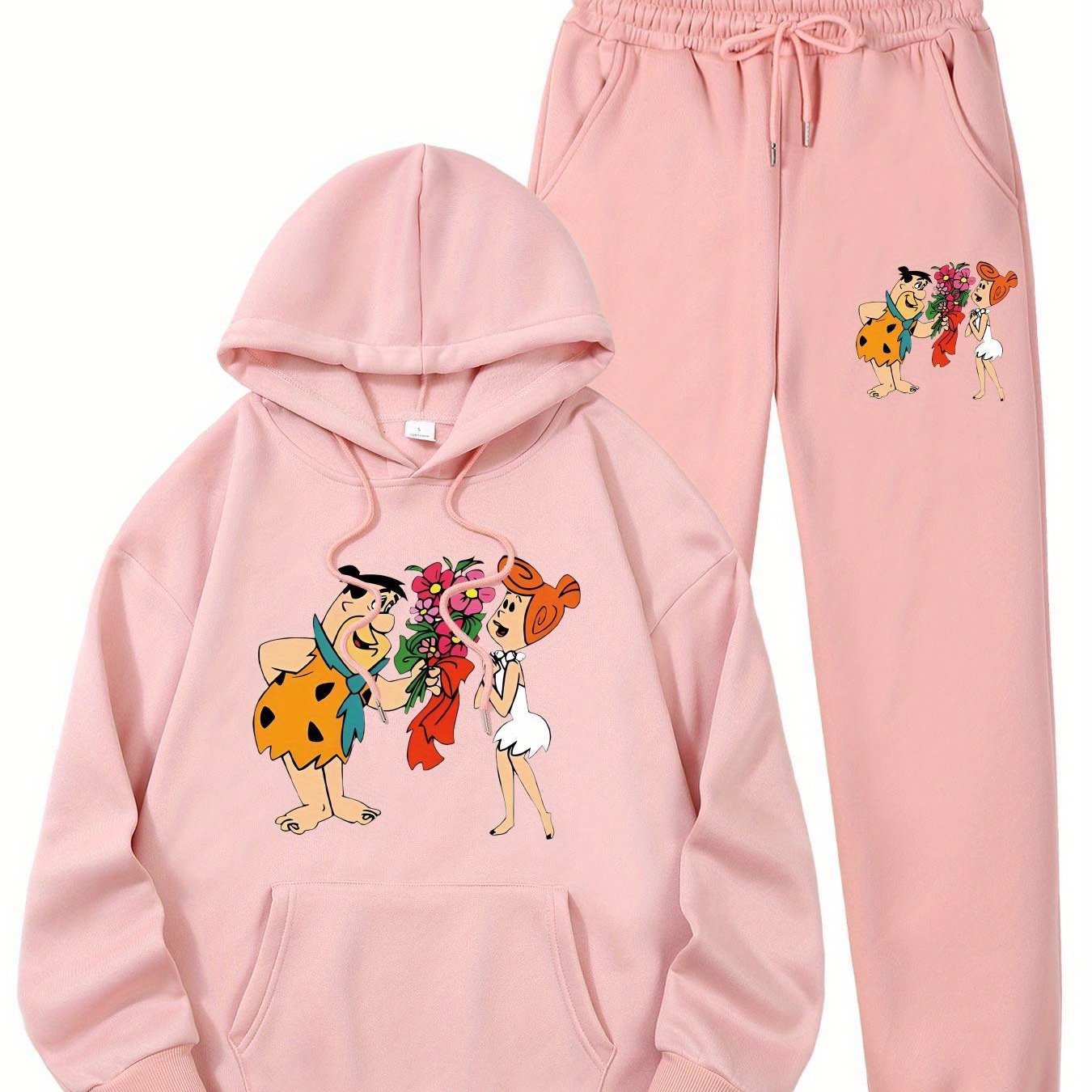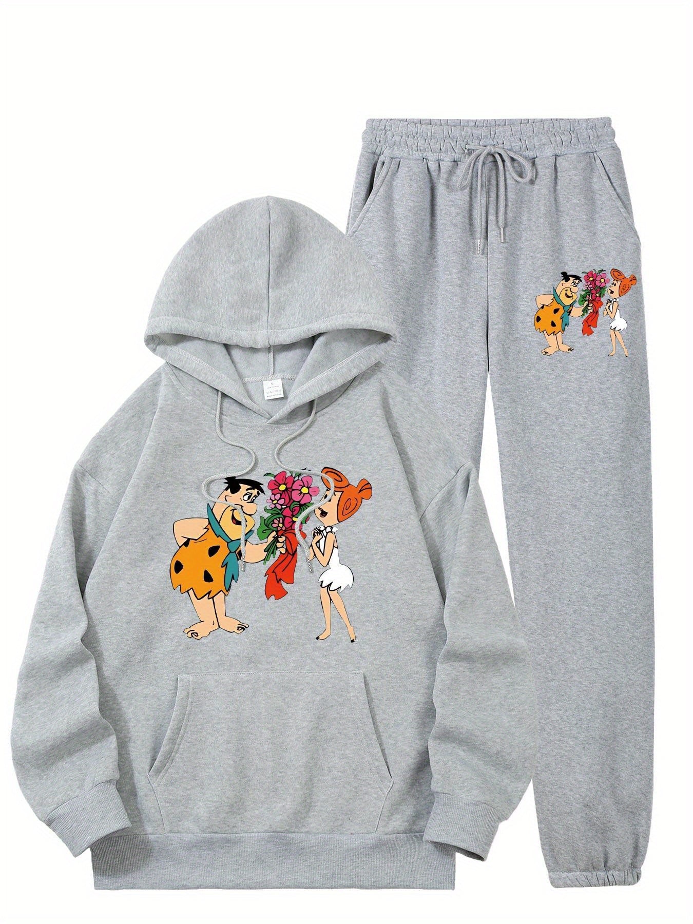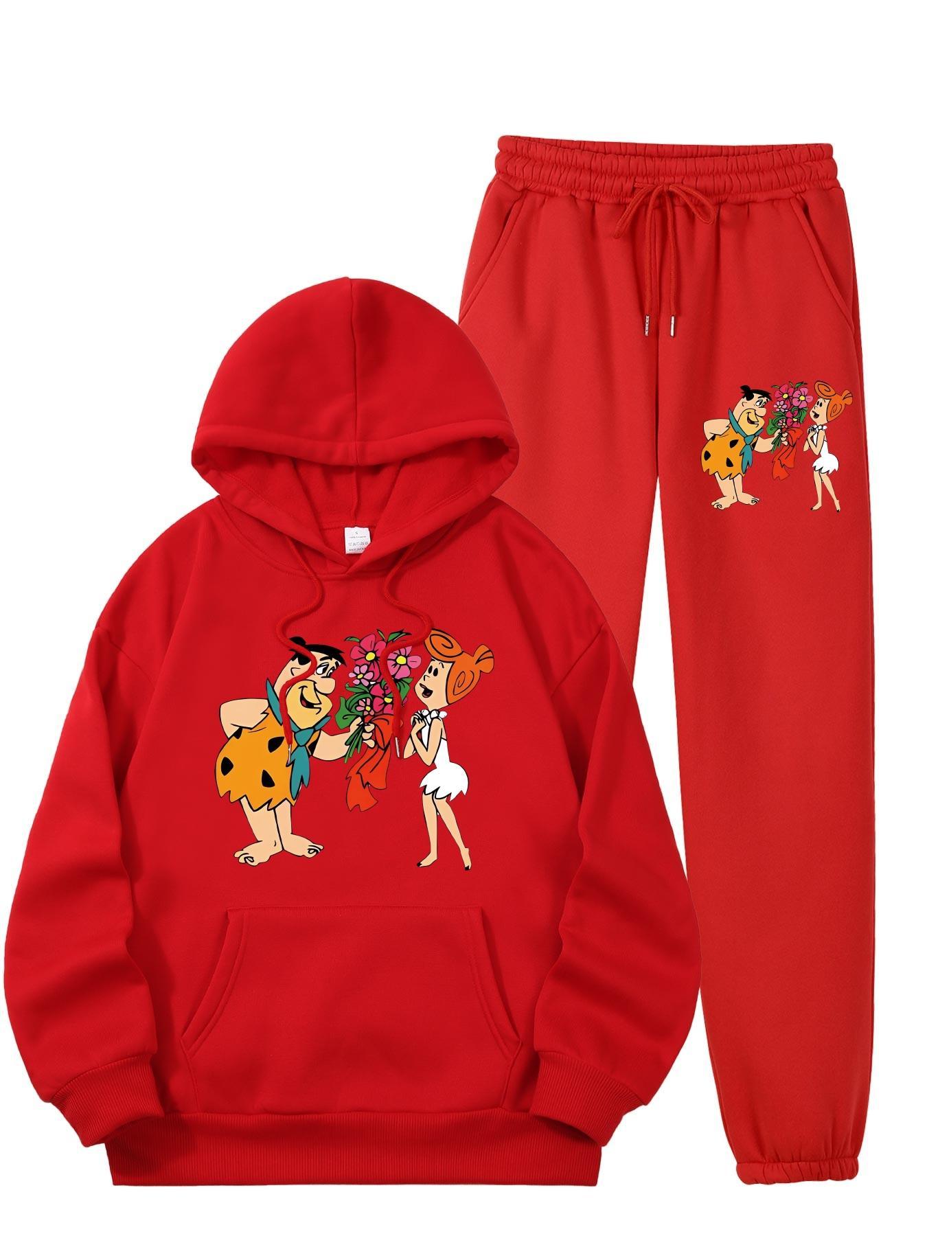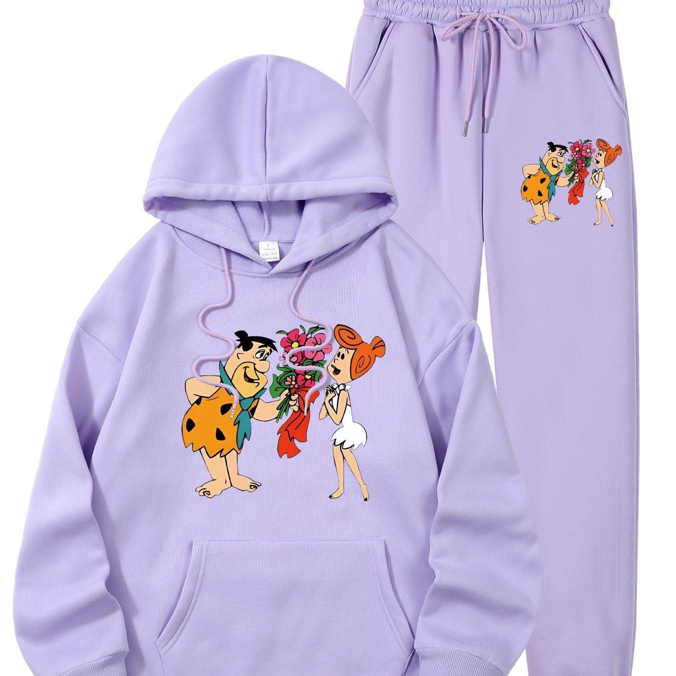 This women’s two-piece ensemble includes a long-sleeve hoodie and coordinating sweatpants made from 100% polyester knit fabric with slight stretch, ensuring comfort across all seasons. The hoodie features a crew neck and a practical kangaroo pocket, merging functionality with relaxed style. Both items display vibrant cartoon character prints achieved through precise positioning printing, offering a fun yet stylish detail. Built for durability and easy maintenance, this set is machine washable with dry cleaning not advised. Produced in Guangdong, China, it delivers cozy warmth and a comfortable fit, perfect for lounging, casual wear, or light physical activities year-round.