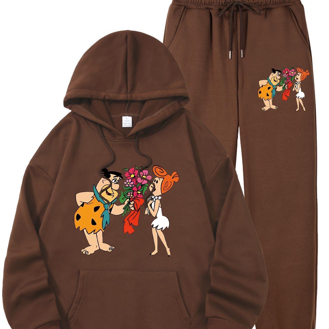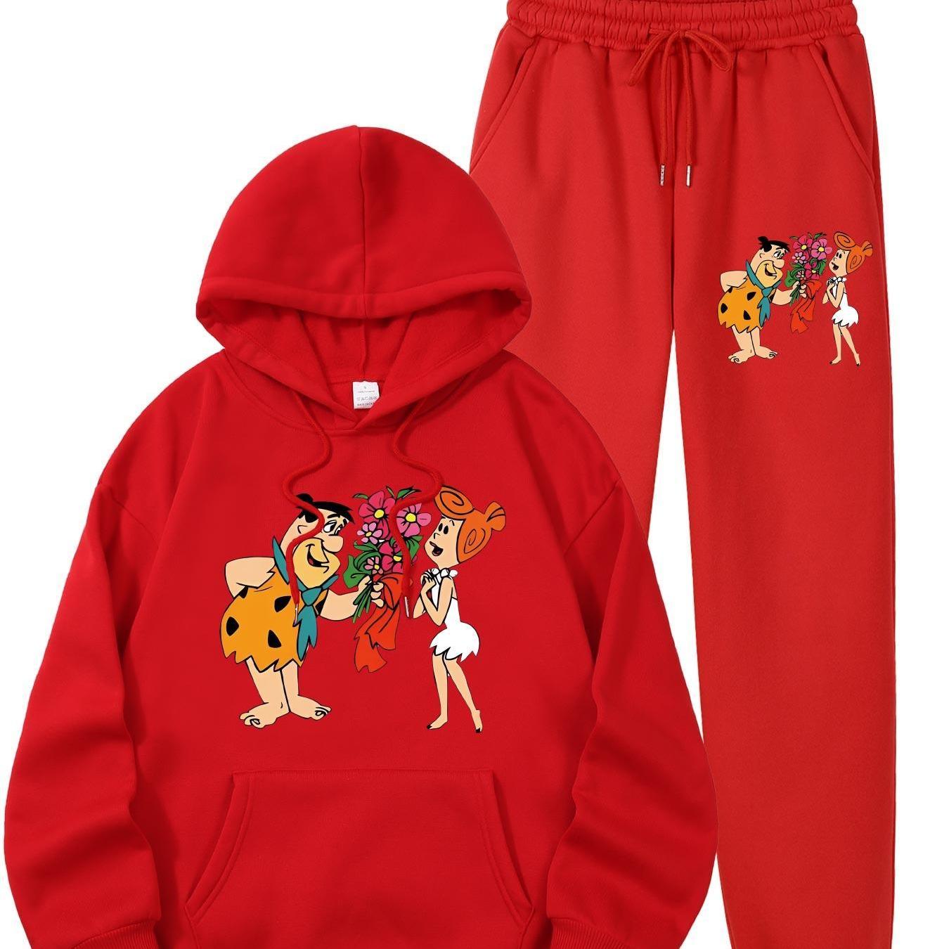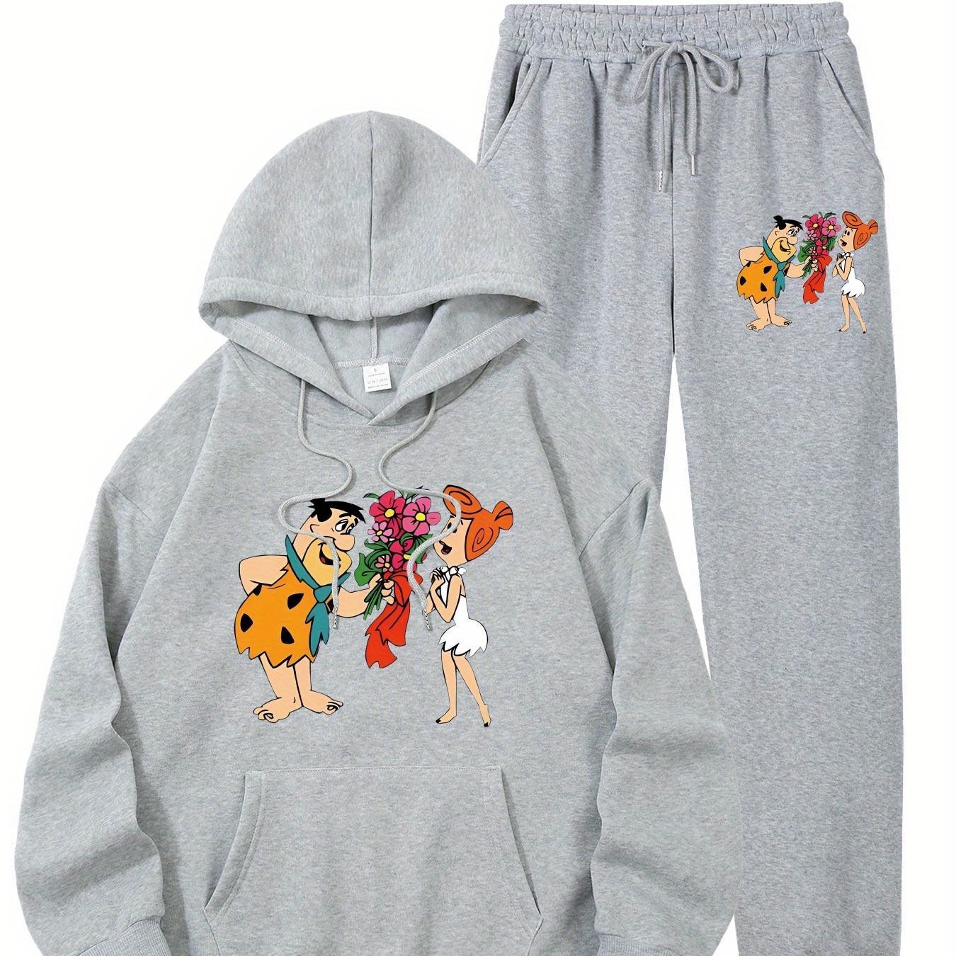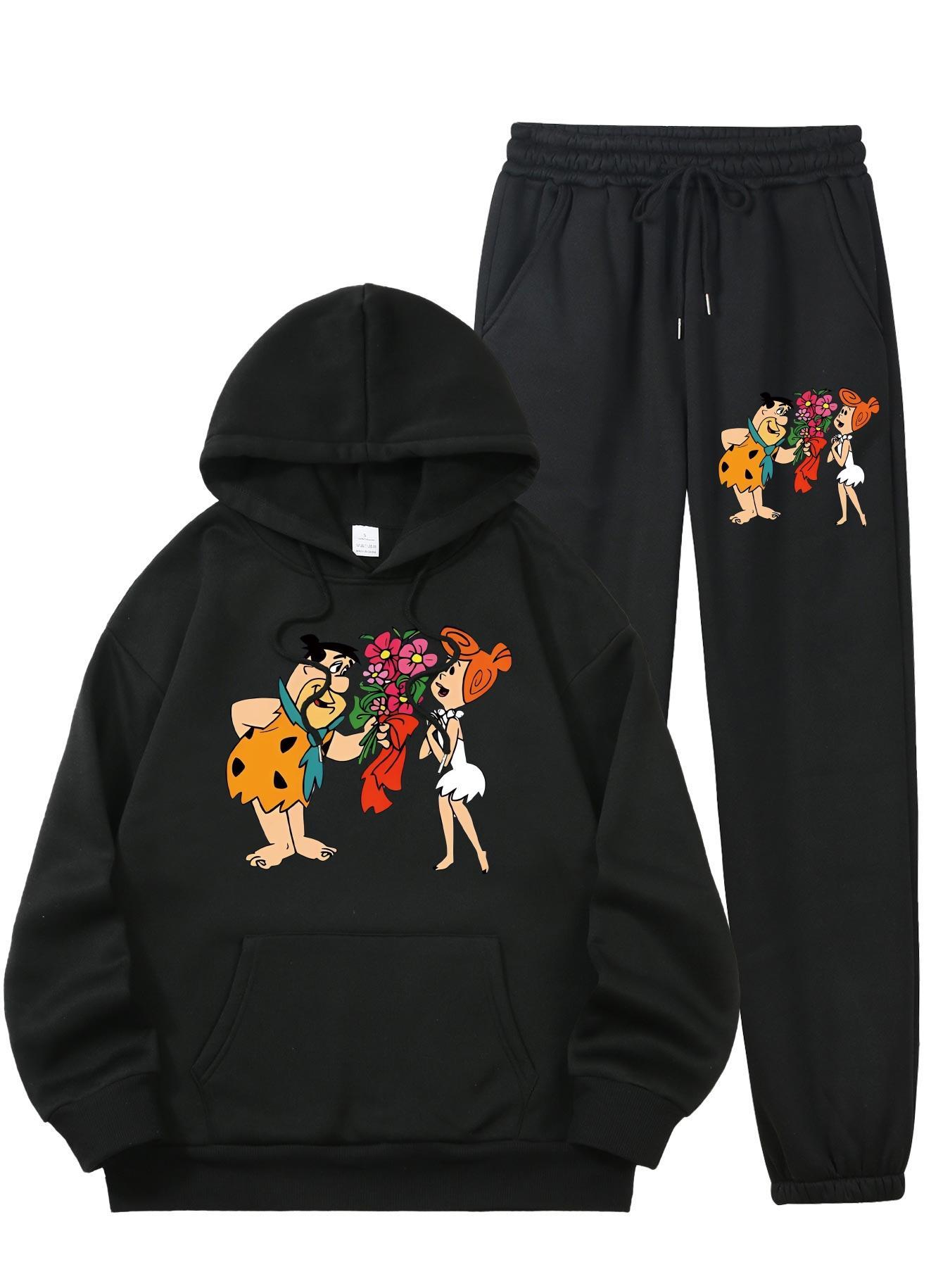 This women’s two-piece ensemble includes a long-sleeve hoodie and coordinating sweatpants made from 100% polyester knit fabric with slight stretch, ensuring comfort across all seasons. The hoodie features a crew neck and a practical kangaroo pocket, merging functionality with relaxed style. Both items display vibrant cartoon character prints achieved through precise positioning printing, offering a fun yet stylish detail. Built for durability and easy maintenance, this set is machine washable with dry cleaning not advised. Produced in Guangdong, China, it delivers cozy warmth and a comfortable fit, perfect for lounging, casual wear, or light physical activities year-round.