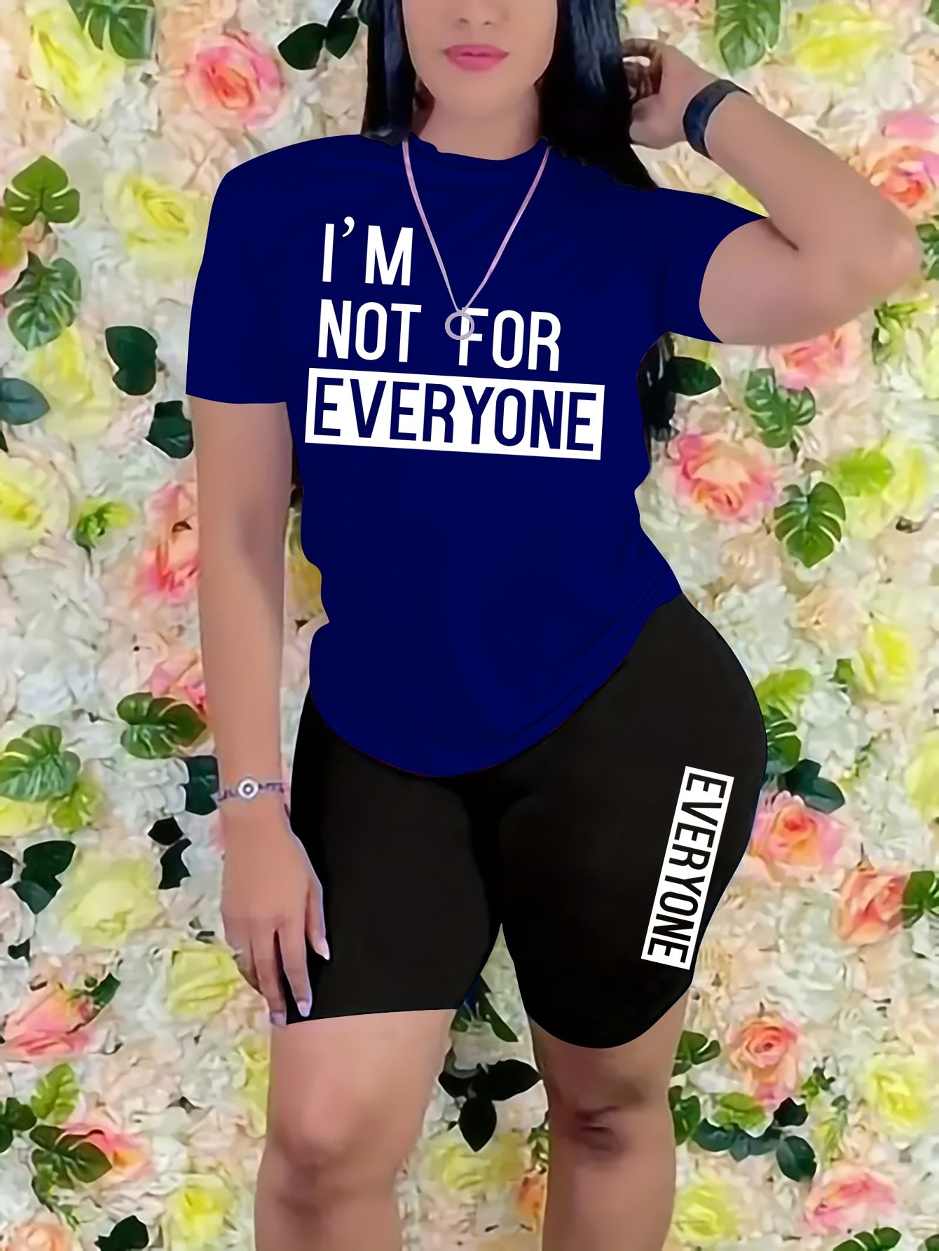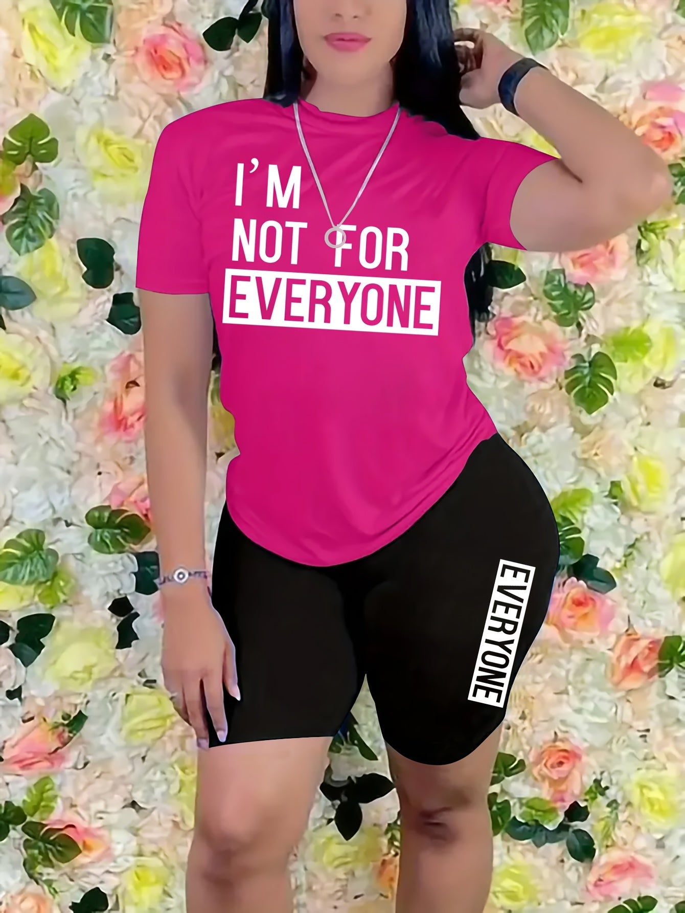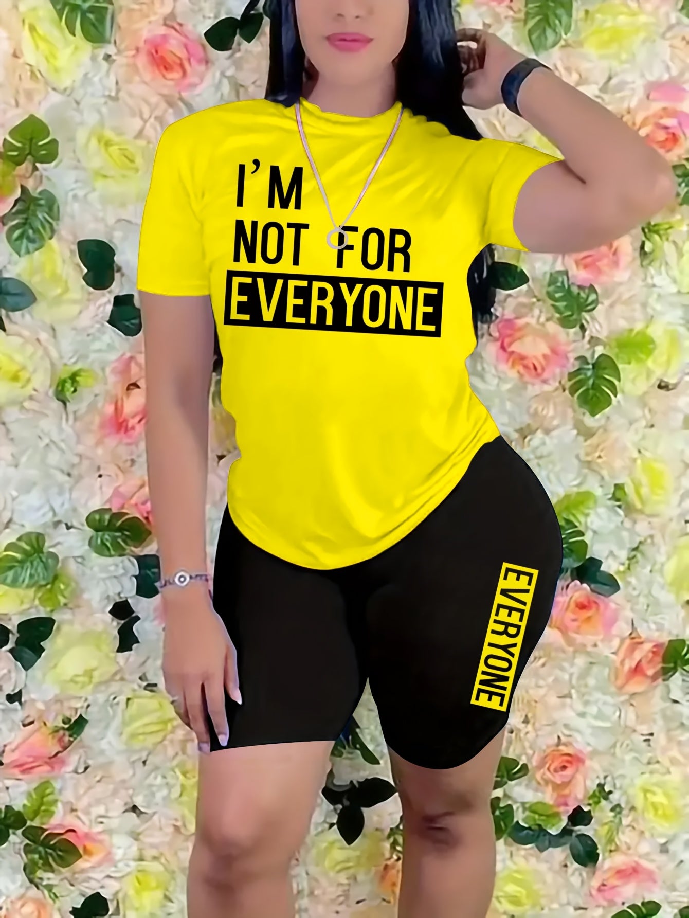 This women's 2-piece ensemble includes a crew neck top and coordinating shorts made from a smooth, lightweight knit fabric composed of 92% polyester and 8% elastane with subtle stretch for a comfortable fit. Perfect for spring and summer, the 180g/m² material is breathable and durable, featuring no lining to keep you cool. The set showcases a unique alphabet print applied through accurate positioning printing. It is machine washable for effortless care, retaining its shape without dry cleaning. Produced in Guangdong, China, this casual set blends functionality with stylish ease for daily wear.