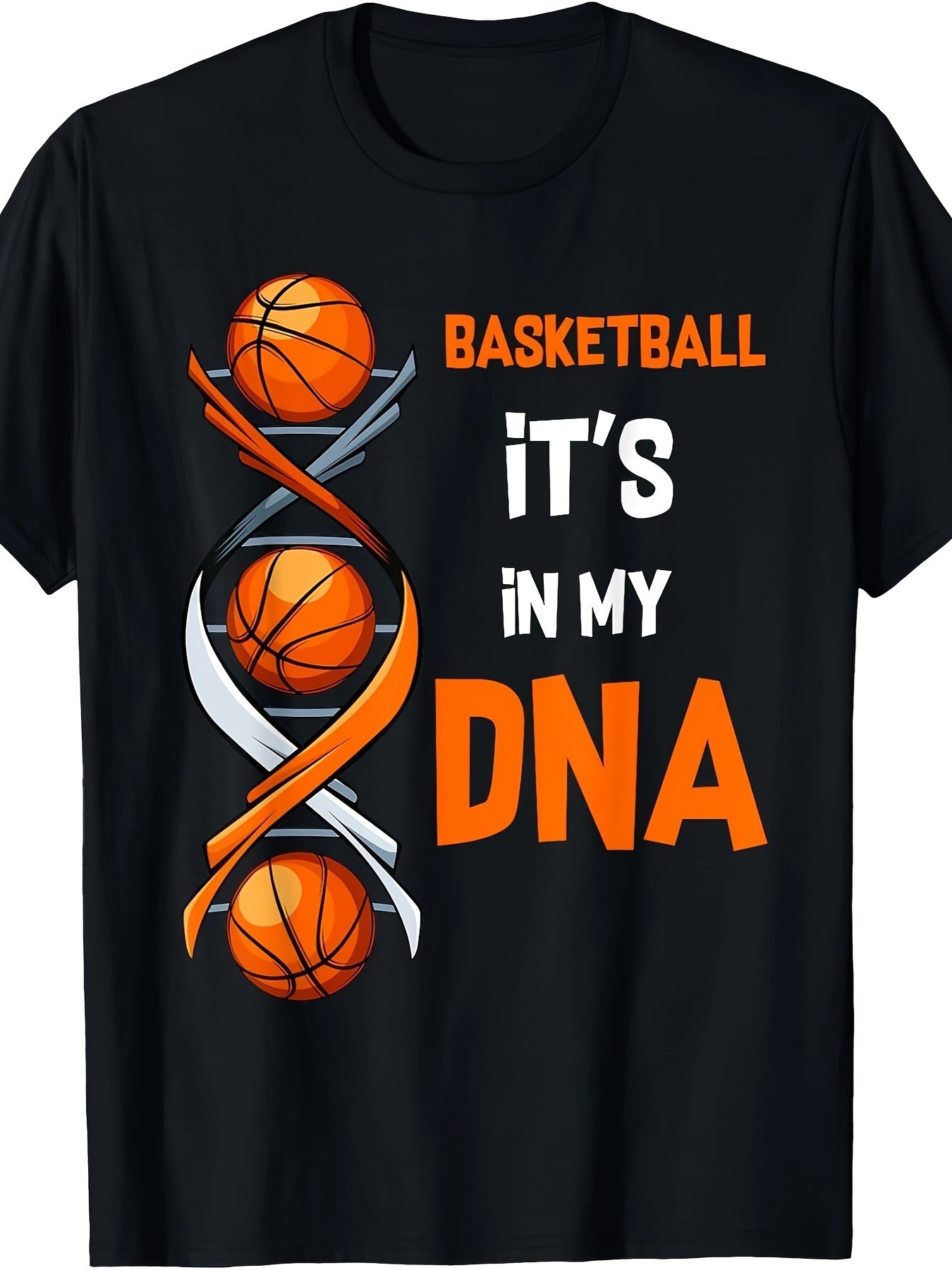 This men’s crew neck T-shirt offers both comfort and style, made from 100% cotton with a slight stretch that enhances breathability and flexibility for everyday wear. The 180 g/m² fabric provides a soft yet durable feel that is gentle on the skin. Showcasing a bold “Basketball It’s In My DNA” heat transfer print, the vintage-inspired design adds a vibrant, sporty touch to casual outfits throughout the year. With a regular fit and short sleeves, it ensures comfort and unrestricted movement, suitable for an active lifestyle. The knit fabric is machine washable, retaining its shape and color after multiple washes for long-lasting use. Perfect for basketball enthusiasts or anyone wanting a combination of casual ease and athletic flair, this T-shirt is great for both on and off the court.