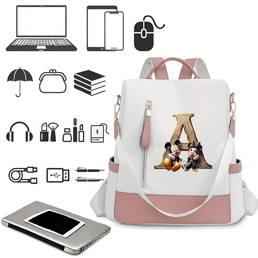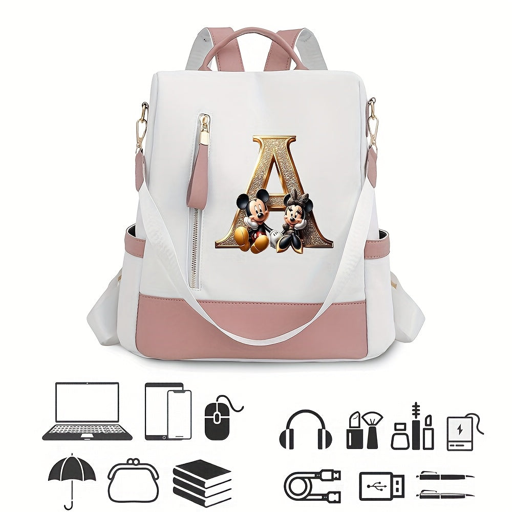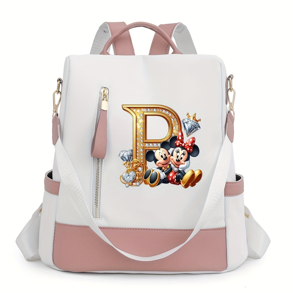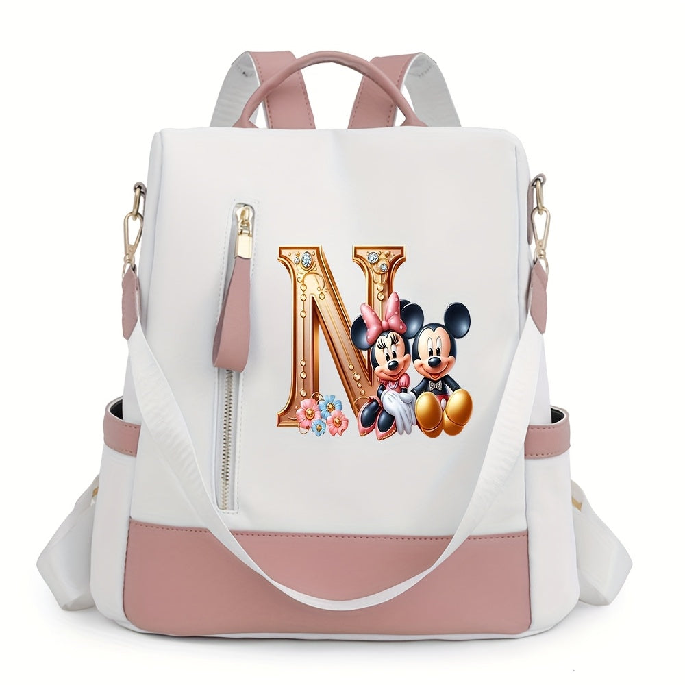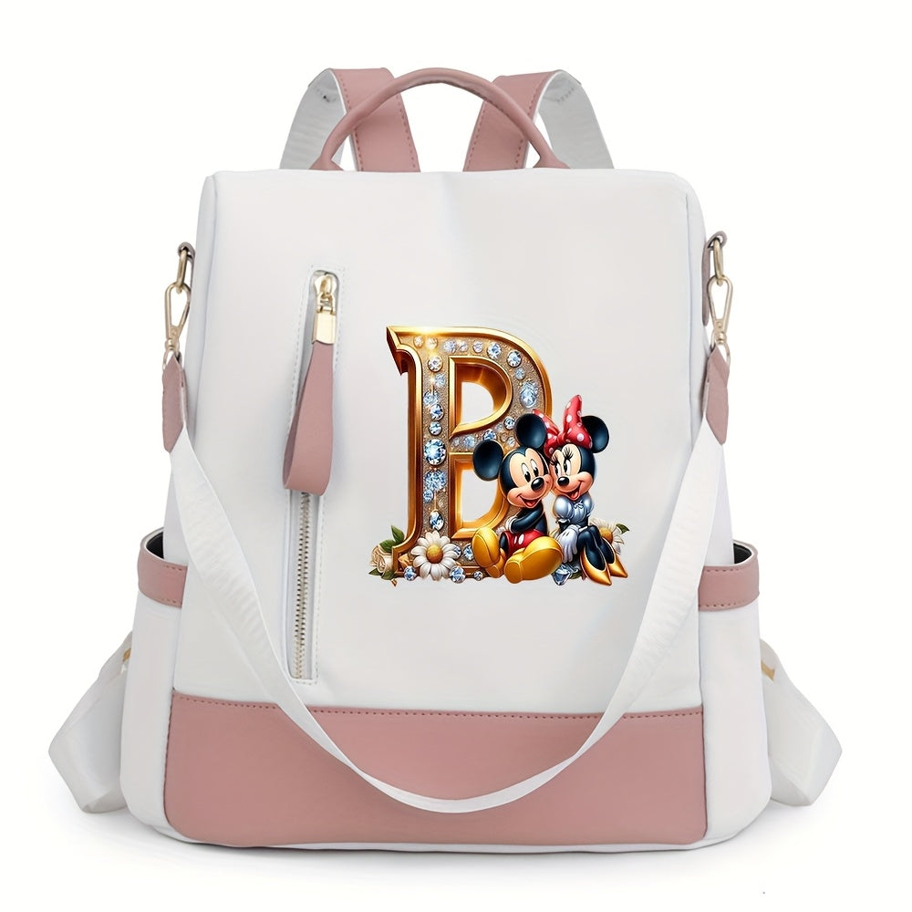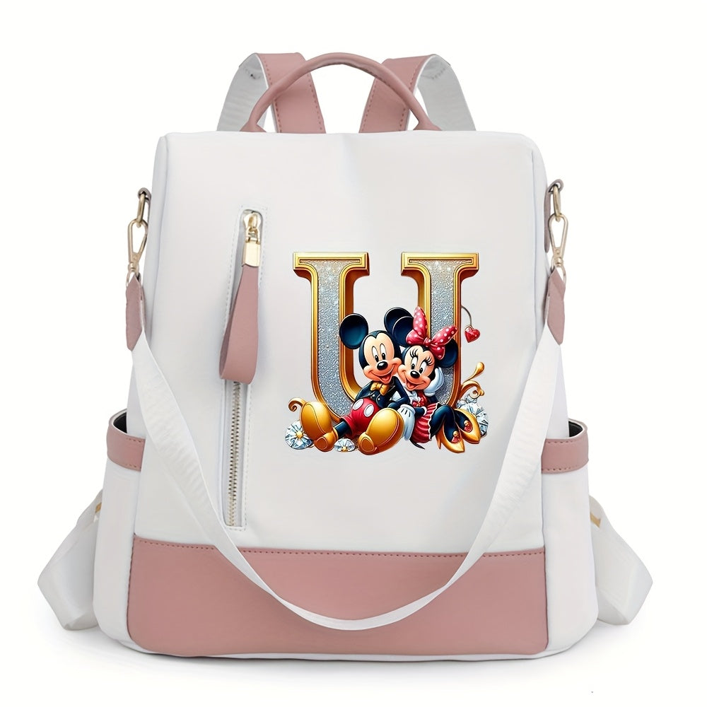 This Disney Mickey backpack showcases a fashionable A-Z letter print, perfect for teenagers aged 14 and older. Made from sturdy PU material with a polyester lining, it provides ample space for daily commuting, shopping, or travel needs. Adjustable shoulder straps offer customizable comfort, while the functional layout helps keep belongings organized. Easy to clean with a wet wipe, this backpack combines style and practicality for everyday use. Manufactured in Zhejiang, China, it is an ideal and thoughtful gift for birthdays or other special events.
