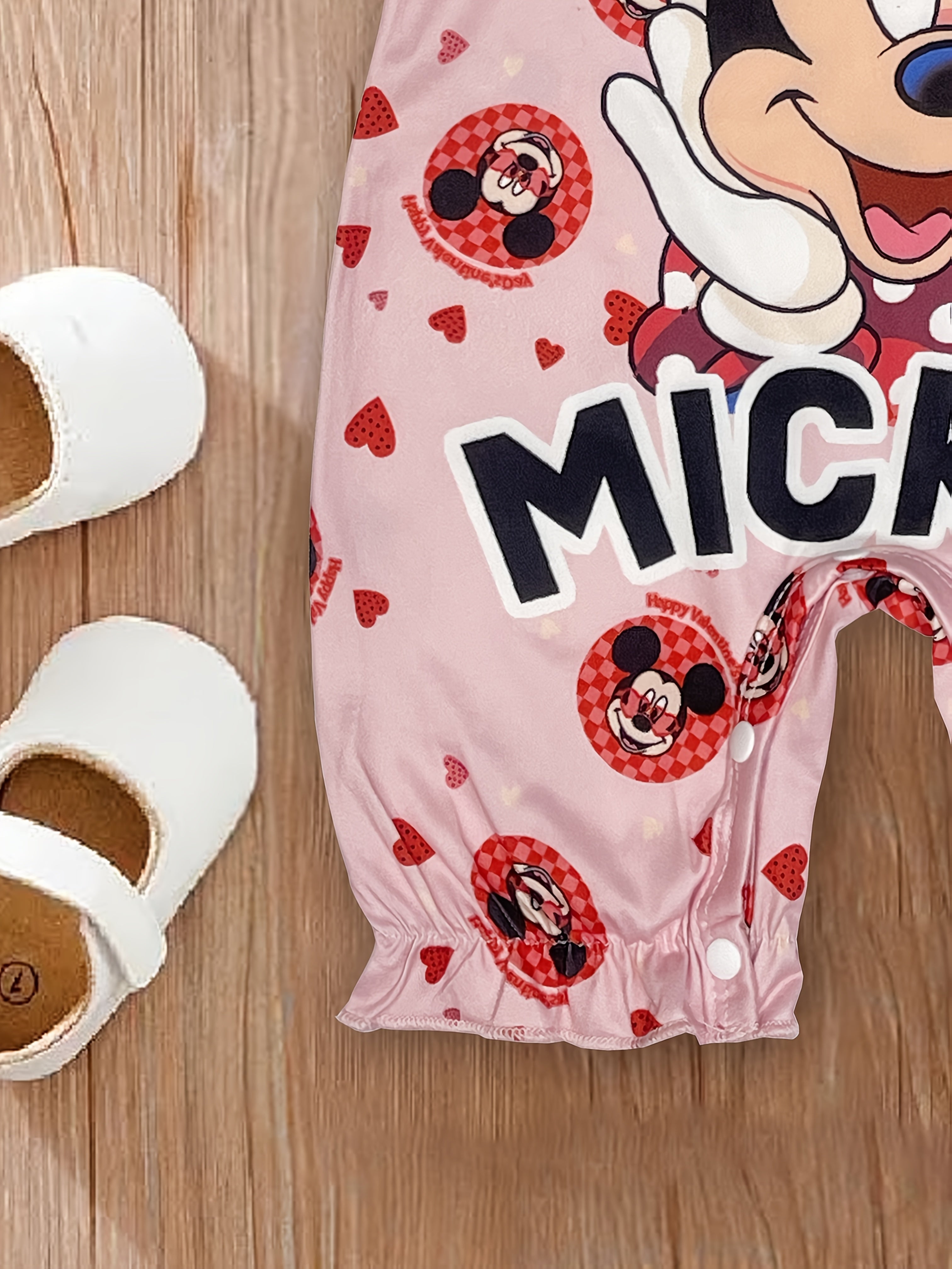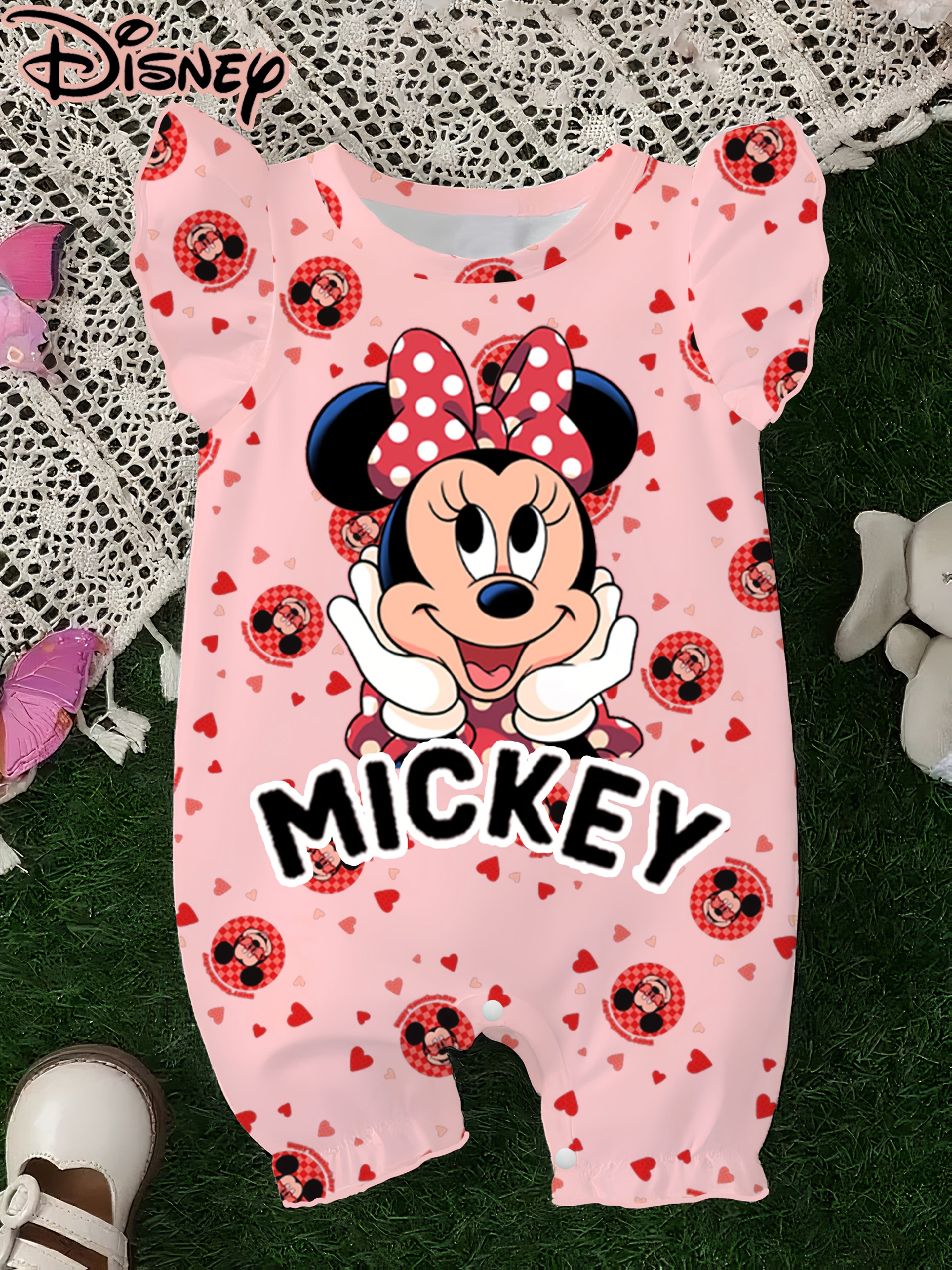This Disney Minnie Bowknot Print romper is tailored for girls aged 0 to 9 months, offering a blend of comfort and functionality for outdoor use. Its crew neck and regular fit allow unrestricted movement, while the 95% polyester and 5% spandex fabric provides gentle stretch and softness suitable for sensitive skin. Made from flame-resistant knit material, it adheres to infant safety standards. The romper features an adorable cartoon bow accent and is machine washable for easy maintenance. Ideal for summer, its breathable design and careful construction make it perfect for both active play and restful naps.