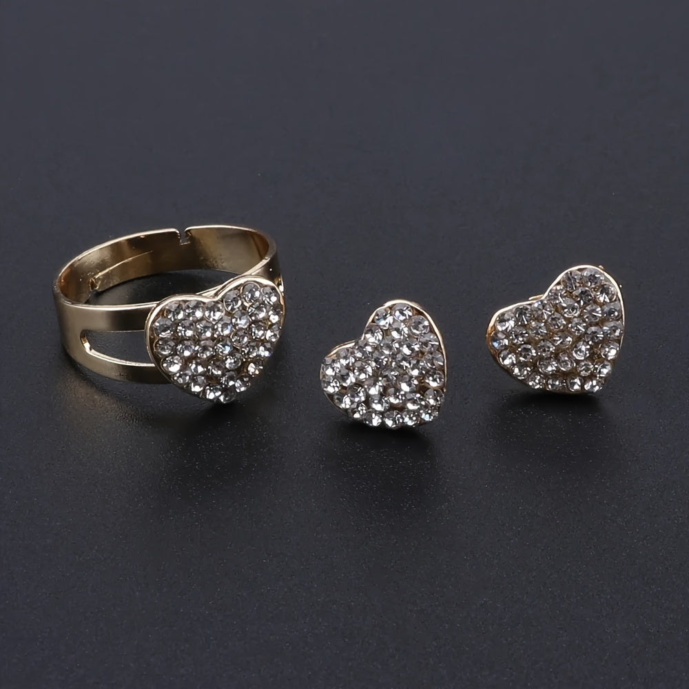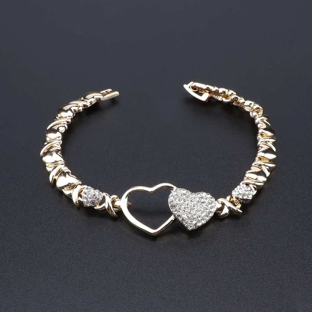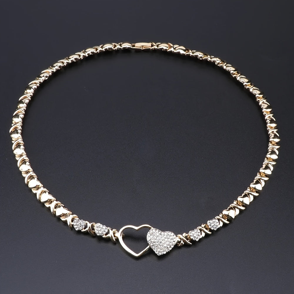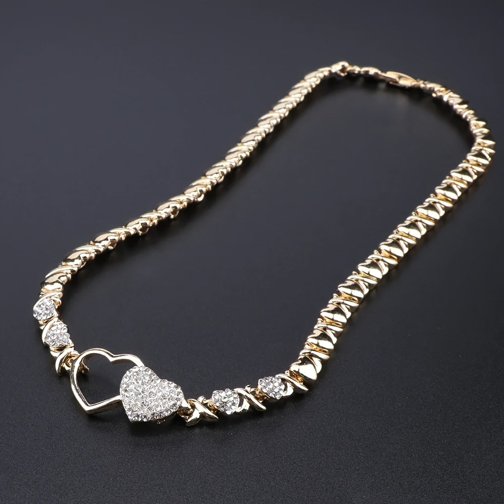 This elegant jewelry set showcases a heart-shaped motif embellished with dazzling rhinestones, adding a touch of sophistication to any party or wedding ensemble. Made from premium alloy and finished with 18K gold plating, it ensures enduring brilliance and strength. The collection includes a necklace, earrings, bracelet, and ring, each designed to harmonize seamlessly for a unified appearance. Perfect for occasions such as the Spring Festival and Mother’s Day, this adaptable set combines understated elegance with celebratory flair, making it an ideal gift or a stylish accessory for