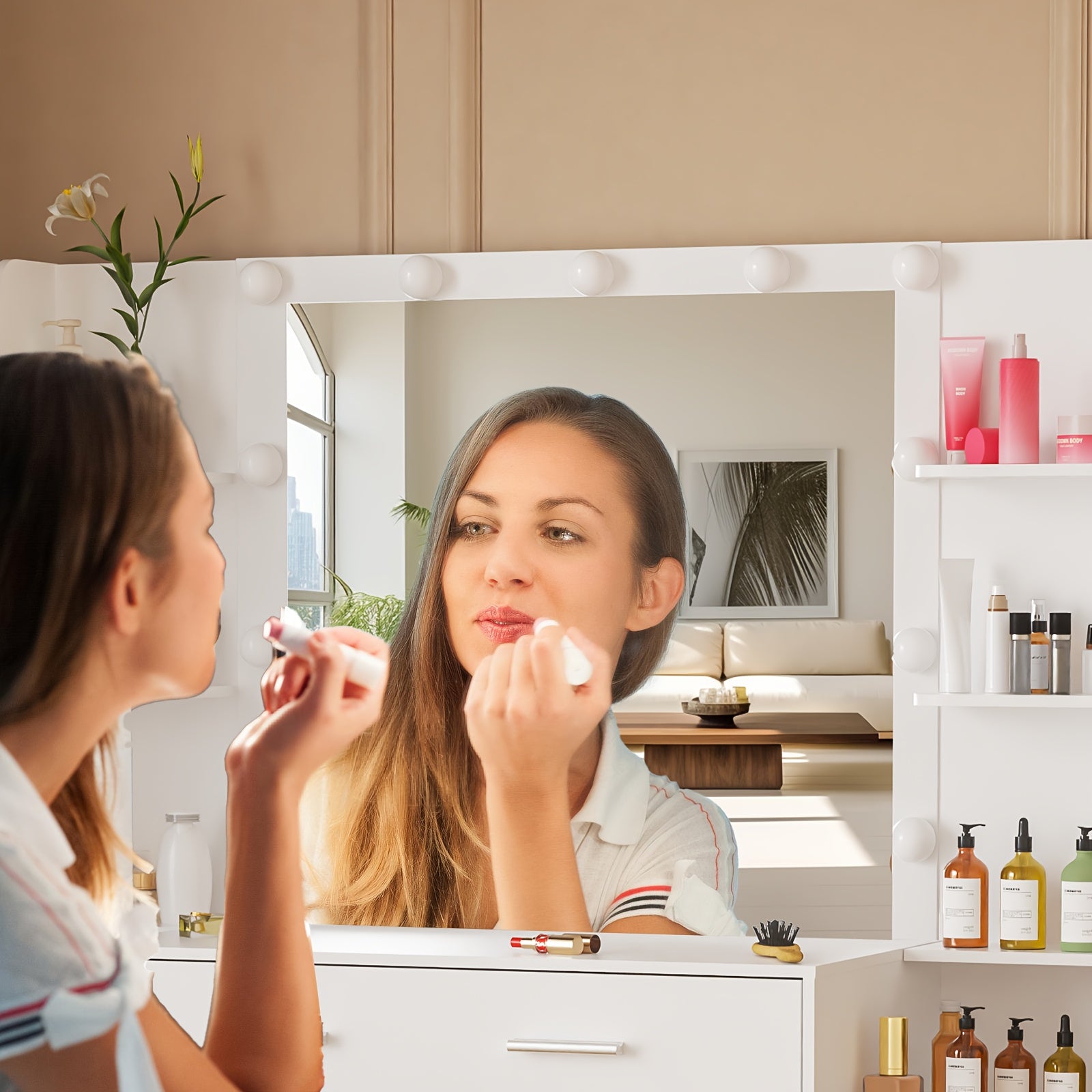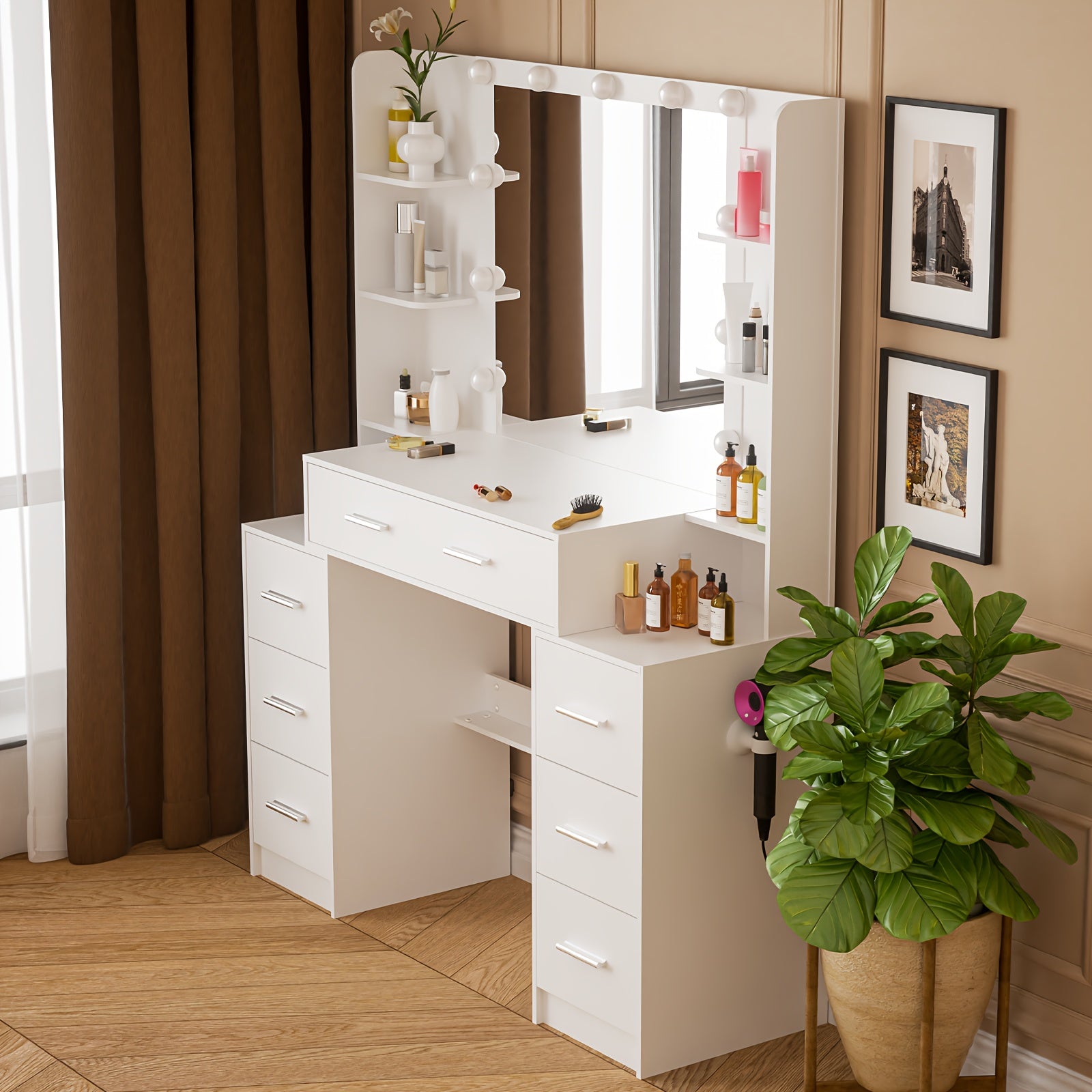 The ONESAIMEI modern white solid wood dresser offers a harmonious blend of classic elegance and practical design, perfect for women seeking stylish storage solutions. Made from premium hardwood in Guangdong, China, this dresser provides ample space with multiple drawers totaling just under 3.2 cubic feet of enclosed storage. It features a built-in illuminated vanity mirror with three USB-powered adjustable lighting settings, allowing customized brightness for makeup and grooming. Measuring less than 27 inches in height and weighing under 30 pounds, the dresser comes pre-assembled for effortless setup and portability. Its timeless aesthetic and multifunctional design make it an excellent gift choice for birthdays, weddings, and other special occasions.