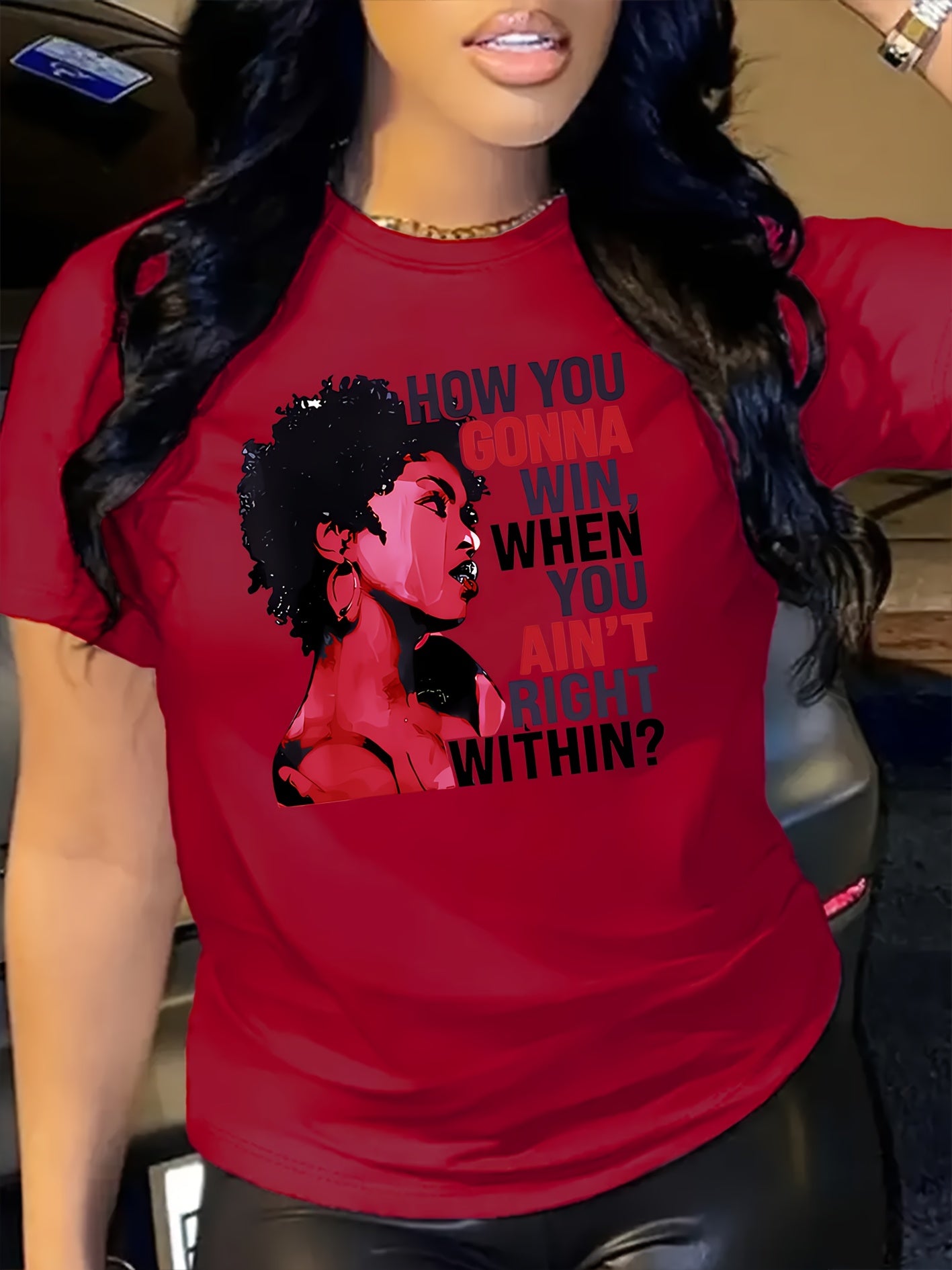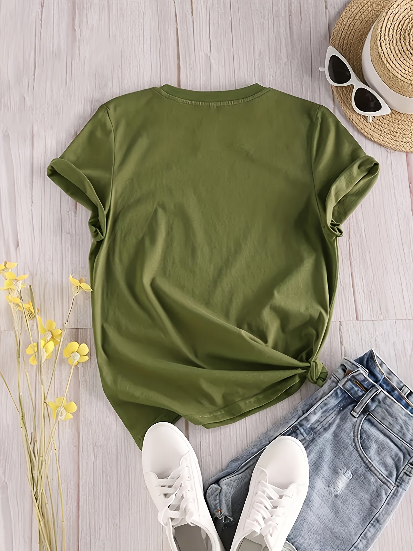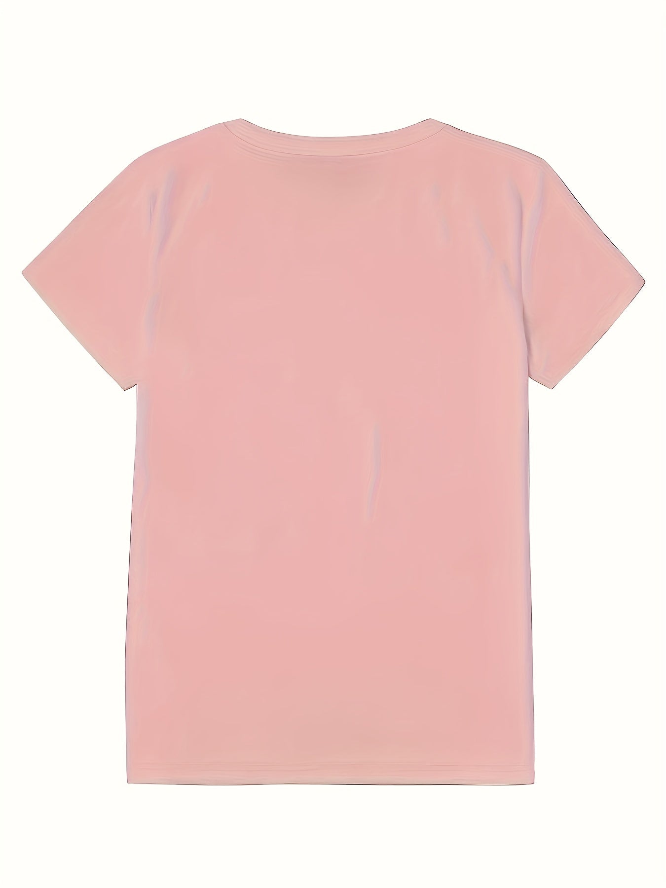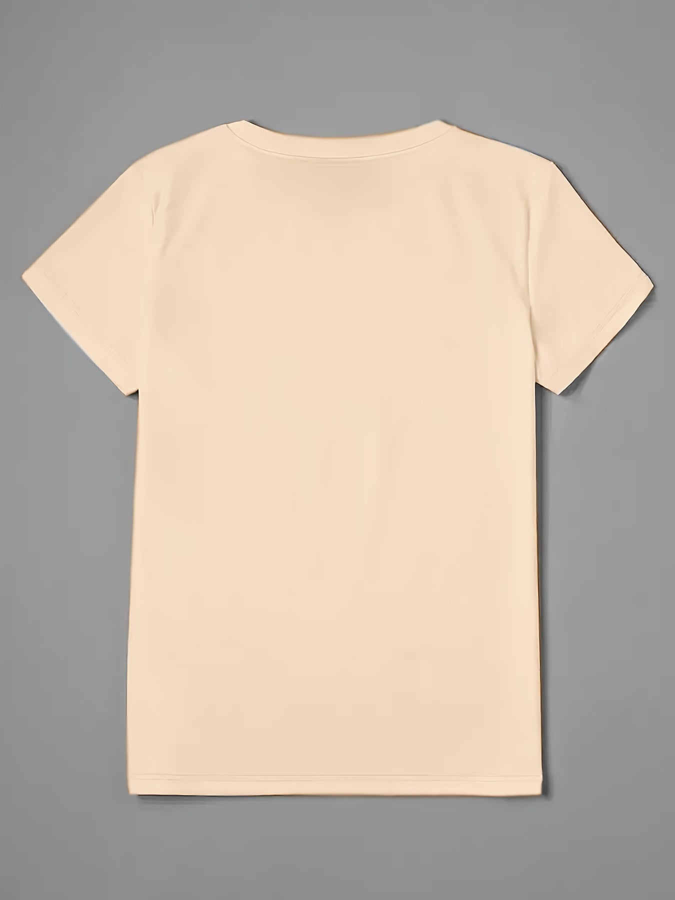 This women’s casual short-sleeve top blends comfort and style, perfect for warm spring and summer days. Made from 100% polyester with moderate stretch, the knit fabric is soft and breathable, adapting comfortably to your movements. It features a classic crew neckline and a sharp letter print created using a precise positioning printing method, offering a contemporary yet easygoing look. Designed for convenient care, it is machine washable (avoid dry cleaning) and built for lasting everyday use. Produced in Guangdong, China, this versatile top is a seamless addition to any casual wardrobe.